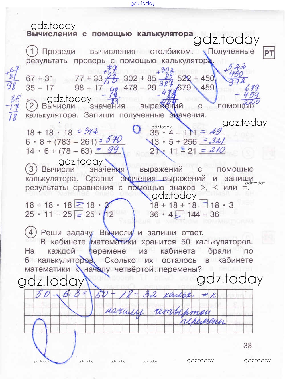На страницах сайта gdz.today вы найдете учебный и вспомогательный материал, направленный на улучшения знаний школьной программы. ГДЗ - онлайн мир знаний Решение к части 2. Страницы 33 Тетради для самостоятельной работы по Математике для 2 класса Захарова, Юдина Академкнига Перспективная начальная школа 2016