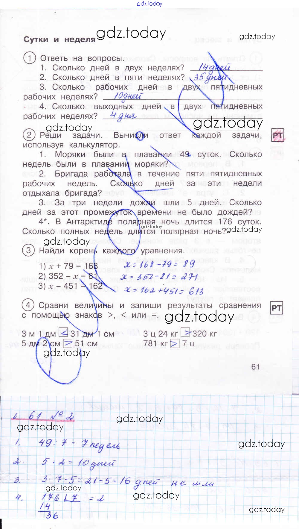 На страницах сайта gdz.today вы найдете учебный и вспомогательный материал, направленный на улучшения знаний школьной программы. ГДЗ - онлайн мир знаний Решение к части 2. Страницы 61 Тетради для самостоятельной работы по Математике для 2 класса Захарова, Юдина Академкнига Перспективная начальная школа 2016