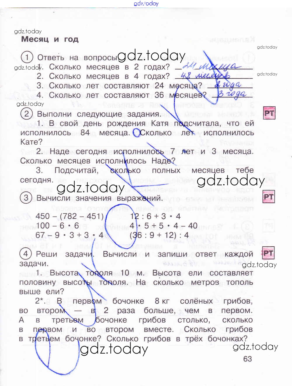 На страницах сайта gdz.today вы найдете учебный и вспомогательный материал, направленный на улучшения знаний школьной программы. ГДЗ - онлайн мир знаний Решение к части 2. Страницы 63 Тетради для самостоятельной работы по Математике для 2 класса Захарова, Юдина Академкнига Перспективная начальная школа 2016