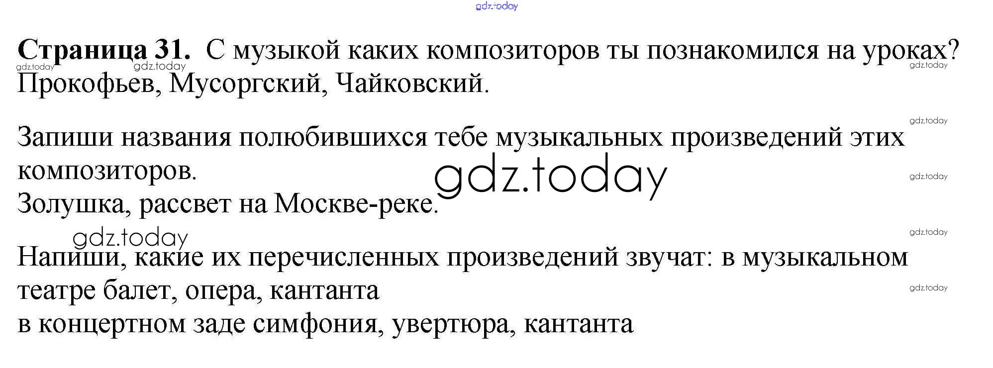 Ответы к Страницы (решение) 31 Рабочей тетради по Музыке для 2 класса Критская, Сергеева Просвещение Школа России, Перспектива 2018