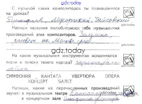 На страницах сайта gdz.today вы найдете учебный и вспомогательный материал, направленный на улучшения знаний школьной программы. ГДЗ - онлайн мир знаний Страницы (решение) 31 Рабочей тетради по Музыке для 2 класса Критская, Сергеева Просвещение Школа России, Перспектива 2018