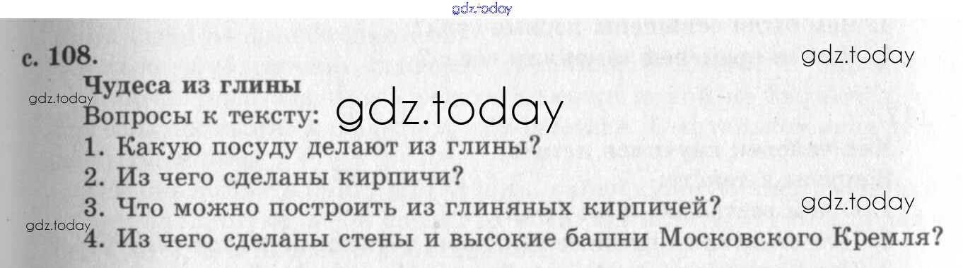 На страницах сайта gdz.today вы найдете учебный и вспомогательный материал, направленный на улучшения знаний школьной программы. ГДЗ - онлайн мир знаний Решение к части 1. Страницы 108 Учебнику по Окружающему миру для 2 класса Плешаков Просвещение 2008