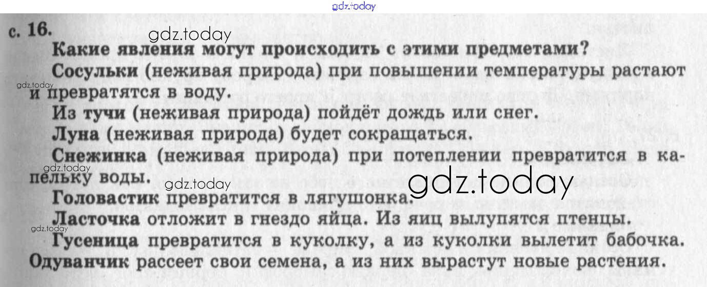 На страницах сайта gdz.today вы найдете учебный и вспомогательный материал, направленный на улучшения знаний школьной программы. ГДЗ - онлайн мир знаний Решение к части 1. Страницы 16 Учебнику по Окружающему миру для 2 класса Плешаков Просвещение 2008