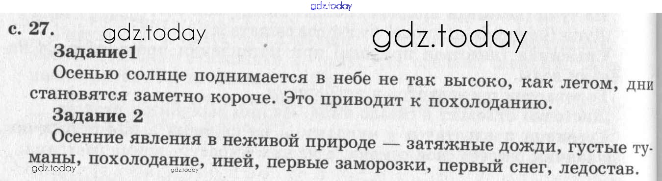 На страницах сайта gdz.today вы найдете учебный и вспомогательный материал, направленный на улучшения знаний школьной программы. ГДЗ - онлайн мир знаний Решение к части 1. Страницы 27 Учебнику по Окружающему миру для 2 класса Плешаков Просвещение 2008