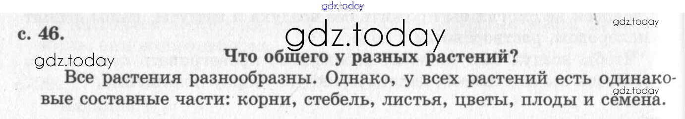 На страницах сайта gdz.today вы найдете учебный и вспомогательный материал, направленный на улучшения знаний школьной программы. ГДЗ - онлайн мир знаний Решение к части 1. Страницы 46 Учебнику по Окружающему миру для 2 класса Плешаков Просвещение 2008