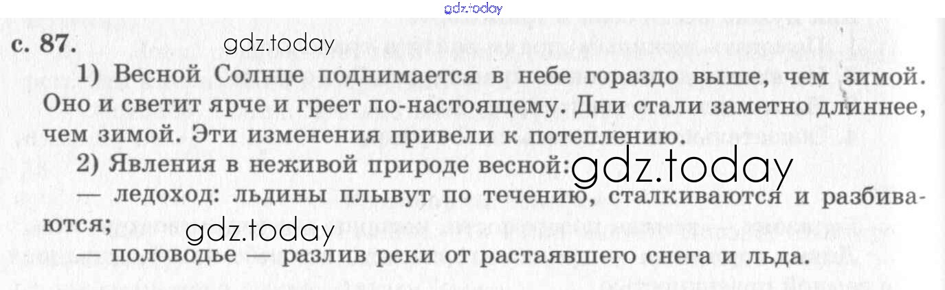 На страницах сайта gdz.today вы найдете учебный и вспомогательный материал, направленный на улучшения знаний школьной программы. ГДЗ - онлайн мир знаний Решение к части 2. Страницы 87 Учебнику по Окружающему миру для 2 класса Плешаков Просвещение 2008