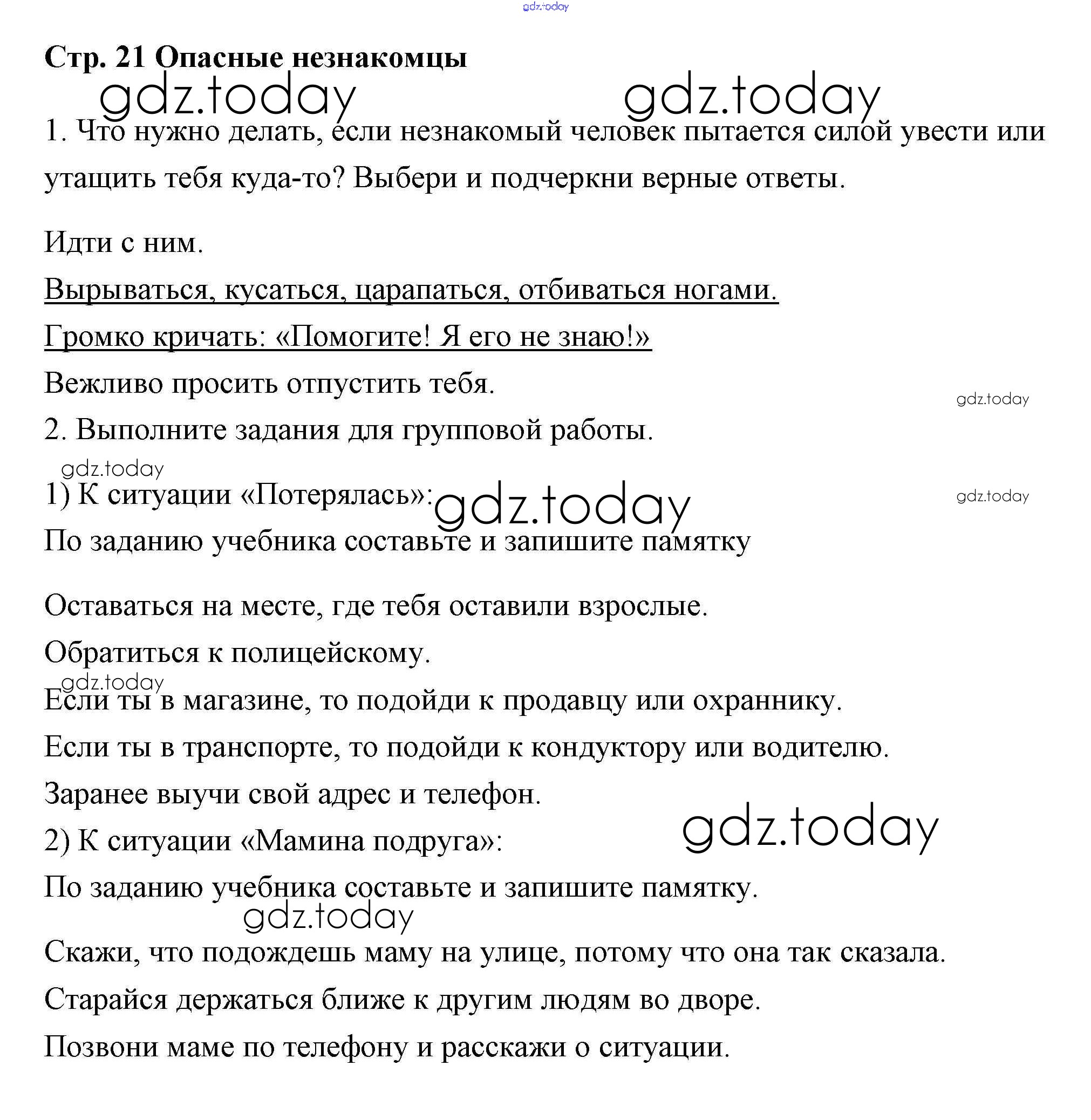 На страницах сайта gdz.today вы найдете учебный и вспомогательный материал, направленный на улучшения знаний школьной программы. ГДЗ - онлайн мир знаний Решение к части 1 (Страницы) 21 Рабочей тетради по Окружающему миру для 2 класса Плешаков Просвещение Школа России 2016