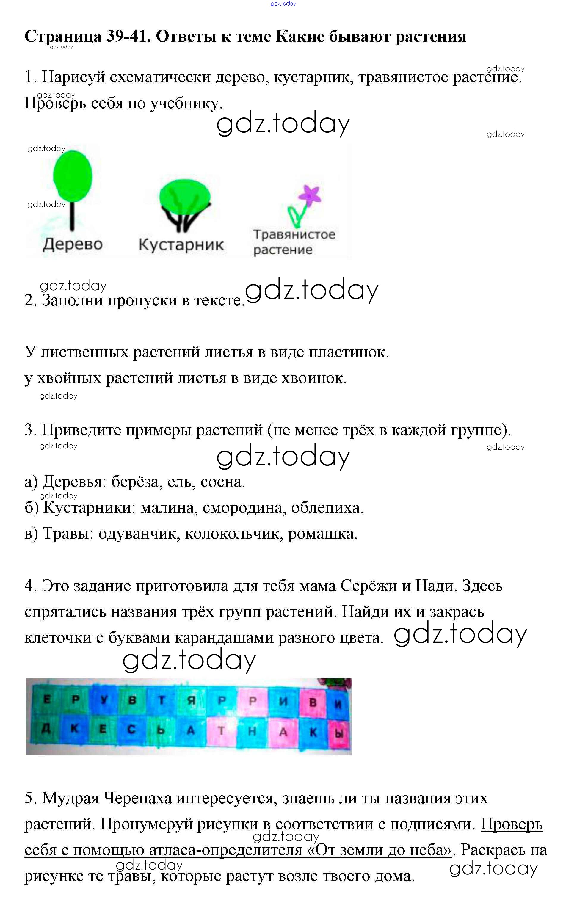 На страницах сайта gdz.today вы найдете учебный и вспомогательный материал, направленный на улучшения знаний школьной программы. ГДЗ - онлайн мир знаний Решение к части 1 (Страницы) 39-41 Рабочей тетради по Окружающему миру для 2 класса Плешаков Просвещение Школа России 2016