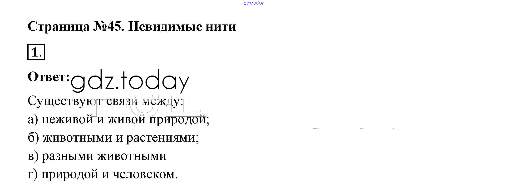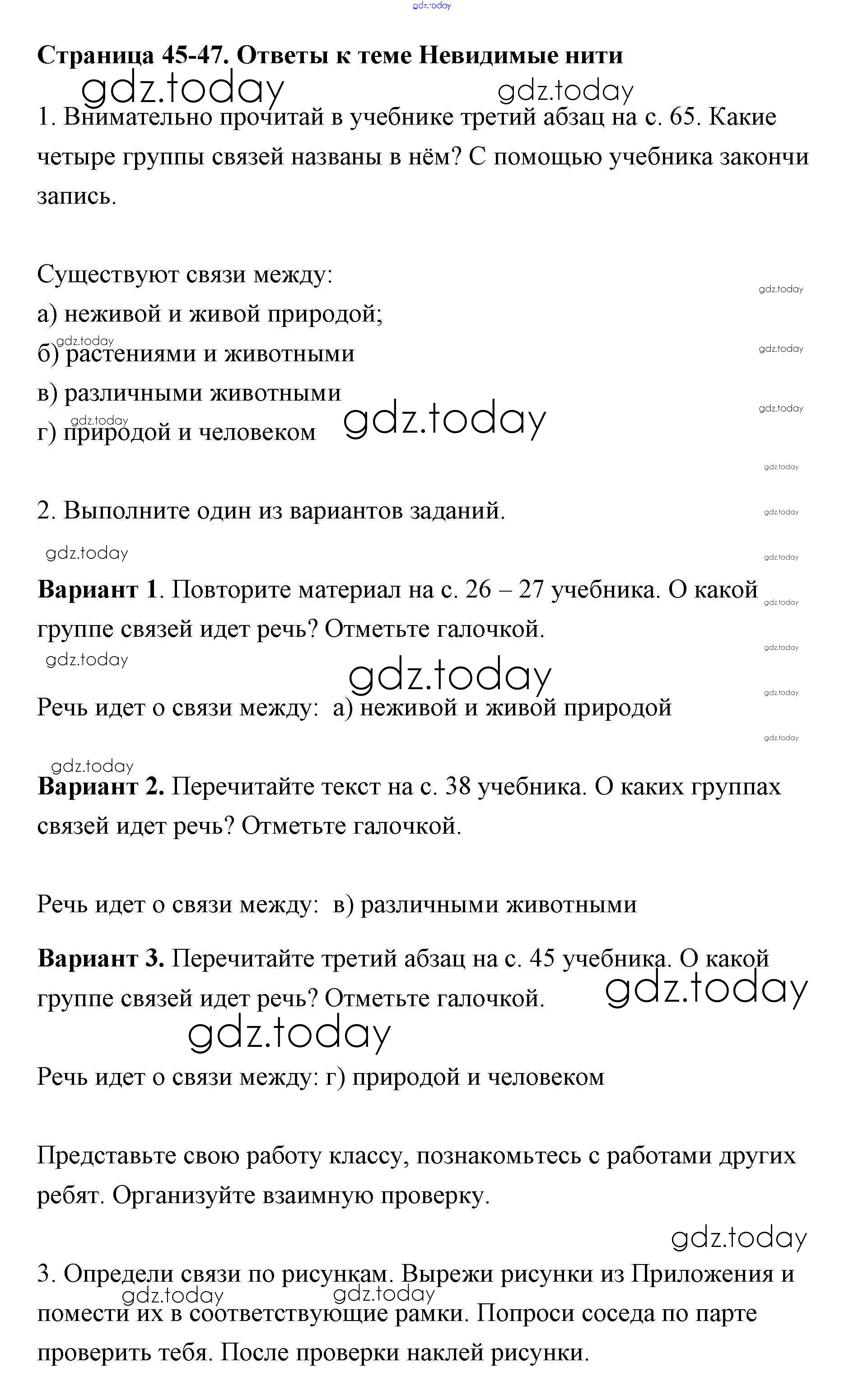 На страницах сайта gdz.today вы найдете учебный и вспомогательный материал, направленный на улучшения знаний школьной программы. ГДЗ - онлайн мир знаний Решение к части 1 (Страницы) 45-47 Рабочей тетради по Окружающему миру для 2 класса Плешаков Просвещение Школа России 2016