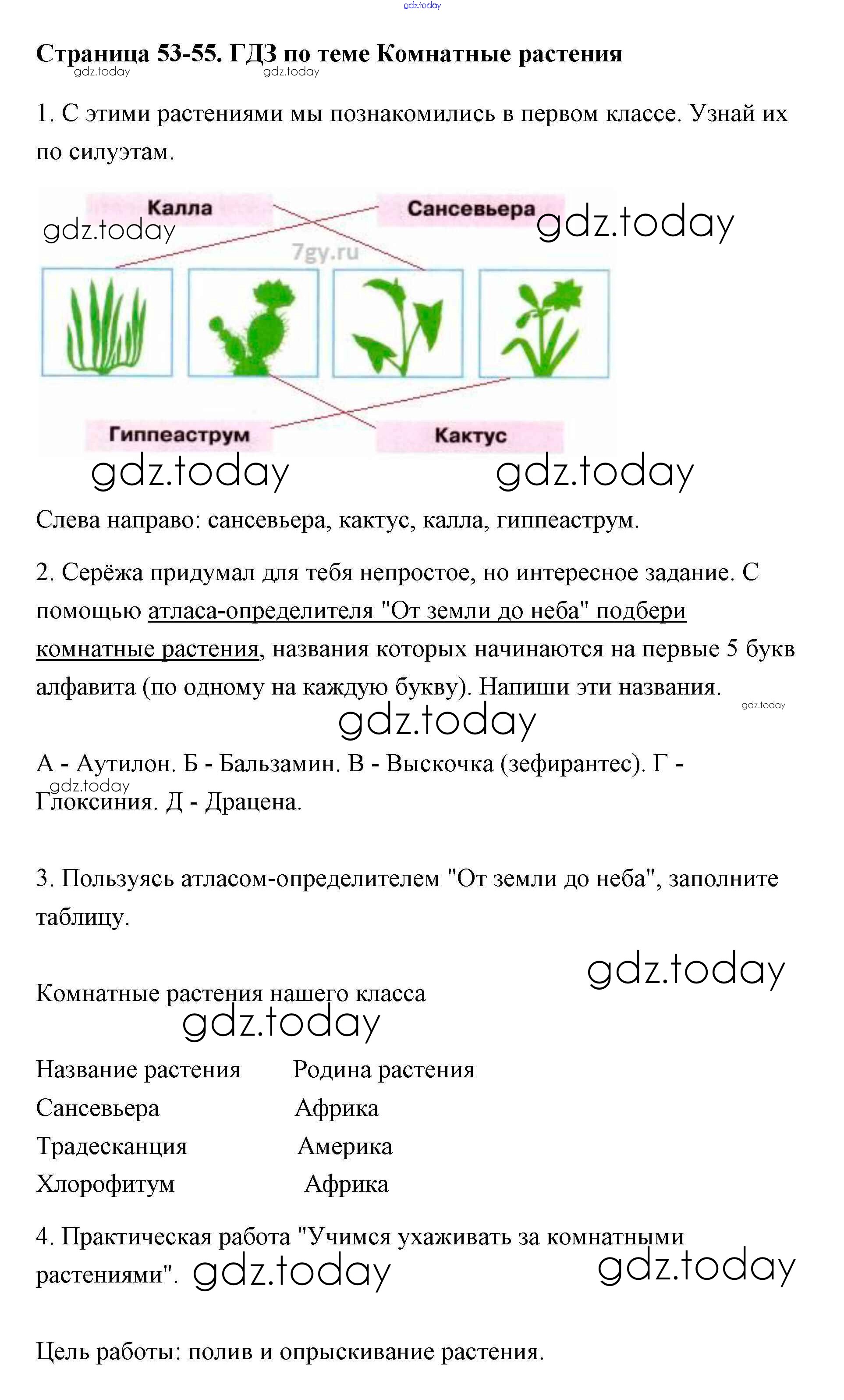 На страницах сайта gdz.today вы найдете учебный и вспомогательный материал, направленный на улучшения знаний школьной программы. ГДЗ - онлайн мир знаний Решение к части 1 (Страницы) 53-55 Рабочей тетради по Окружающему миру для 2 класса Плешаков Просвещение Школа России 2016