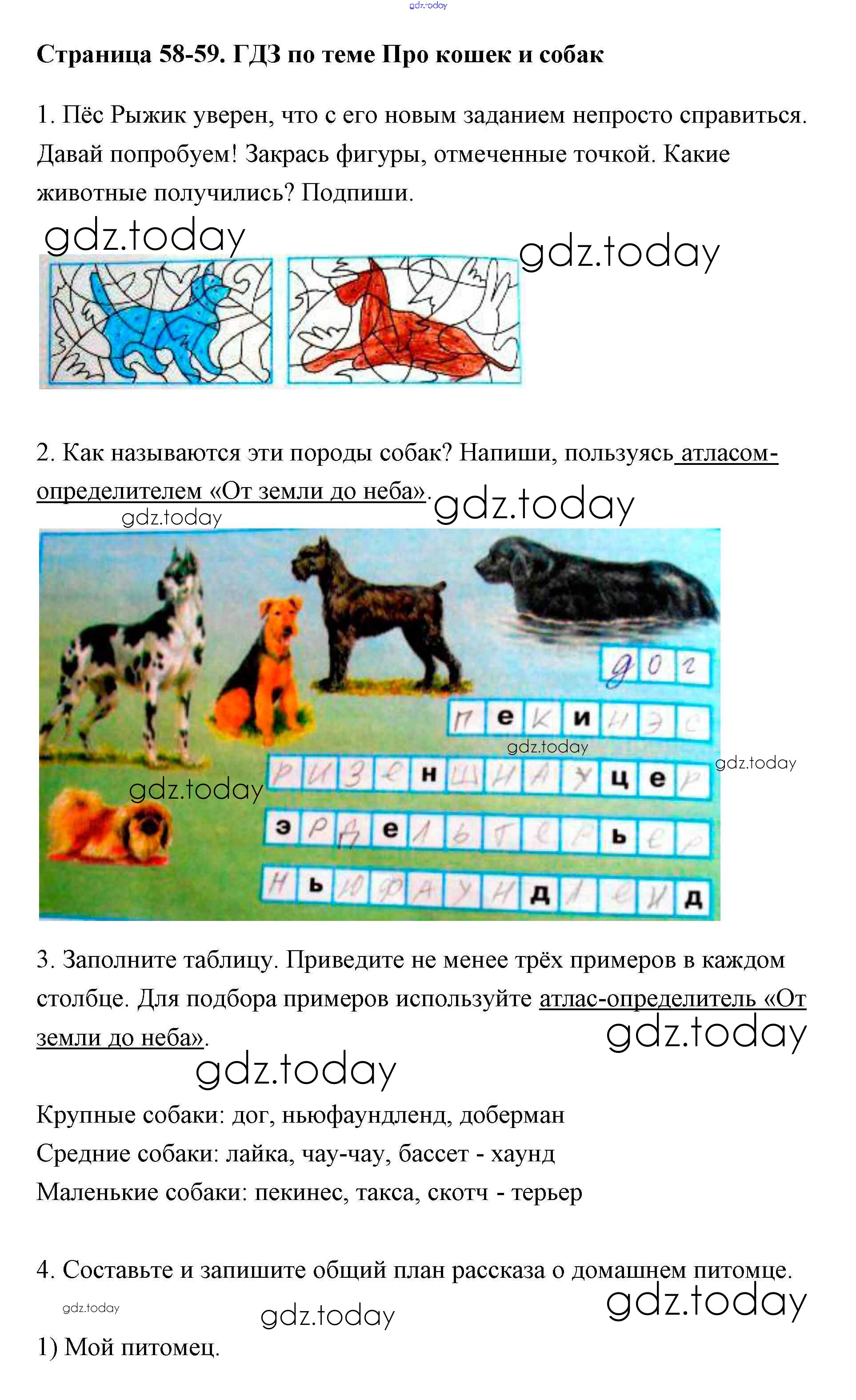 На страницах сайта gdz.today вы найдете учебный и вспомогательный материал, направленный на улучшения знаний школьной программы. ГДЗ - онлайн мир знаний Решение к части 1 (Страницы) 58-59 Рабочей тетради по Окружающему миру для 2 класса Плешаков Просвещение Школа России 2016