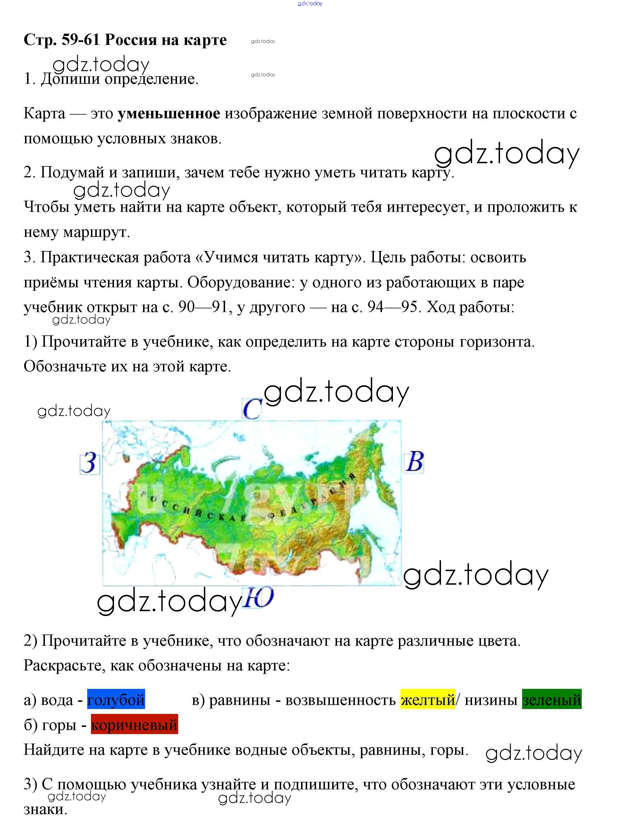 На страницах сайта gdz.today вы найдете учебный и вспомогательный материал, направленный на улучшения знаний школьной программы. ГДЗ - онлайн мир знаний Решение к части 1 (Страницы) 59 Рабочей тетради по Окружающему миру для 2 класса Плешаков Просвещение Школа России 2016