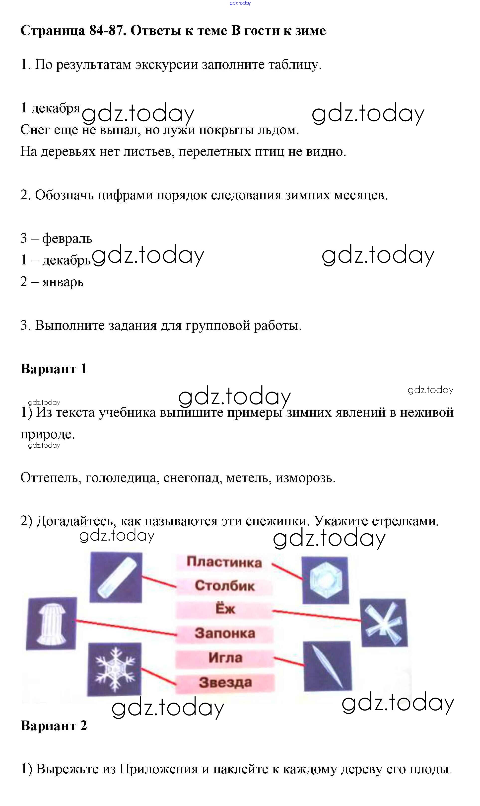 На страницах сайта gdz.today вы найдете учебный и вспомогательный материал, направленный на улучшения знаний школьной программы. ГДЗ - онлайн мир знаний Решение к части 1 (Страницы) 84-87 Рабочей тетради по Окружающему миру для 2 класса Плешаков Просвещение Школа России 2016