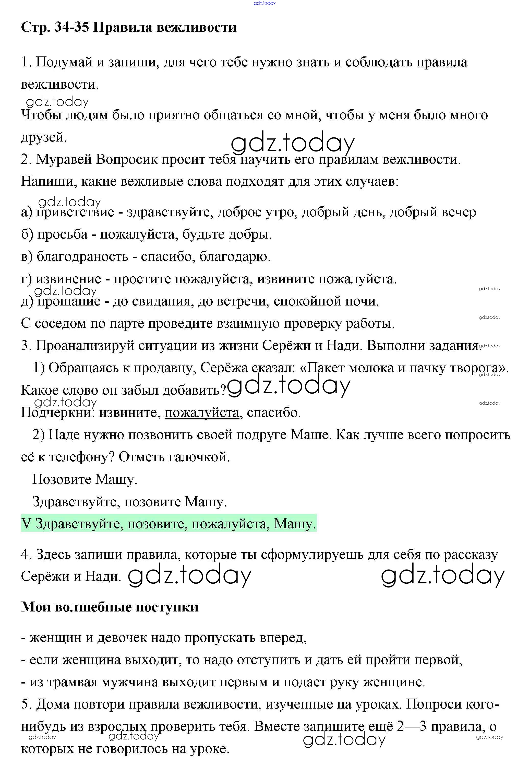 На страницах сайта gdz.today вы найдете учебный и вспомогательный материал, направленный на улучшения знаний школьной программы. ГДЗ - онлайн мир знаний Решение к части 2 (Страницы) 34-35 Рабочей тетради по Окружающему миру для 2 класса Плешаков Просвещение Школа России 2016