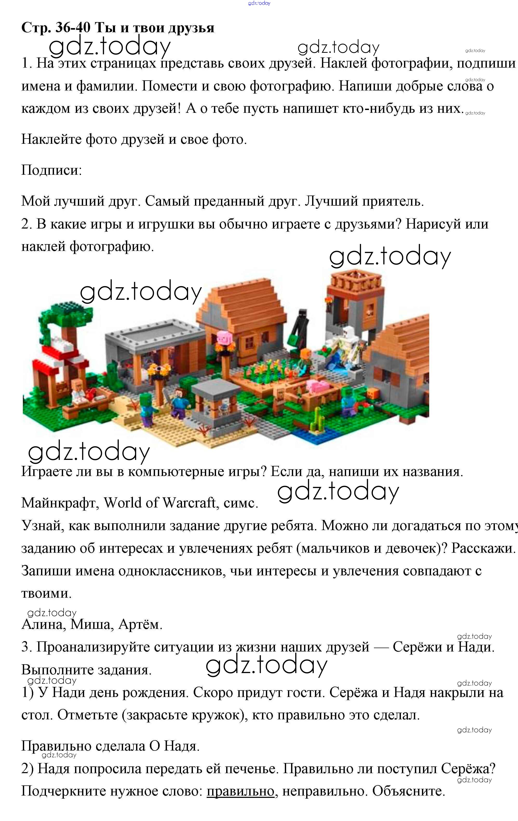 На страницах сайта gdz.today вы найдете учебный и вспомогательный материал, направленный на улучшения знаний школьной программы. ГДЗ - онлайн мир знаний Решение к части 2 (Страницы) 36-40 Рабочей тетради по Окружающему миру для 2 класса Плешаков Просвещение Школа России 2016
