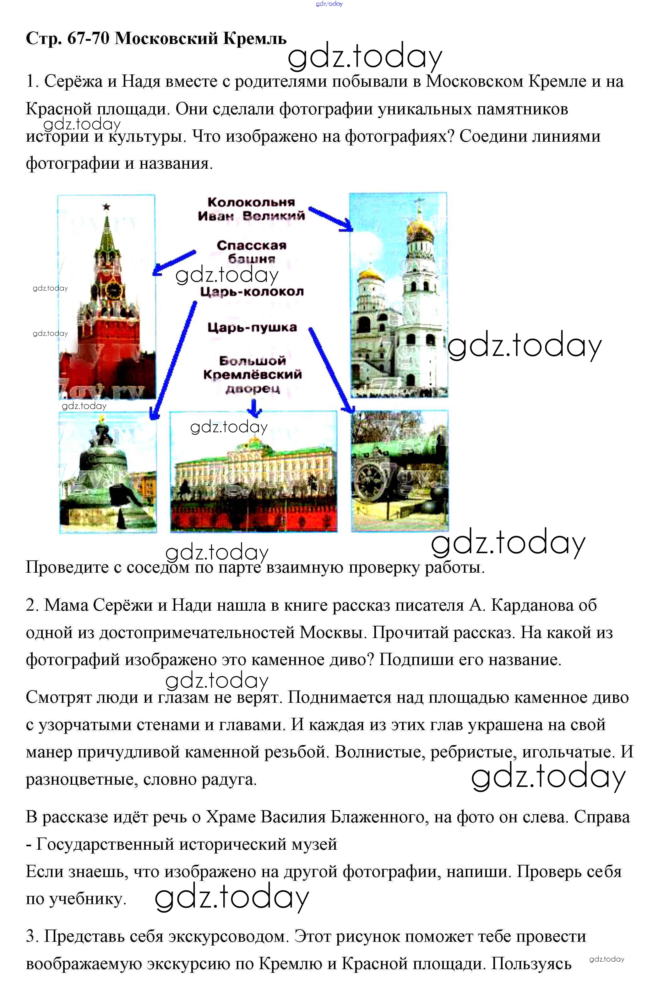 На страницах сайта gdz.today вы найдете учебный и вспомогательный материал, направленный на улучшения знаний школьной программы. ГДЗ - онлайн мир знаний Решение к части 2 (Страницы) 67-70 Рабочей тетради по Окружающему миру для 2 класса Плешаков Просвещение Школа России 2016