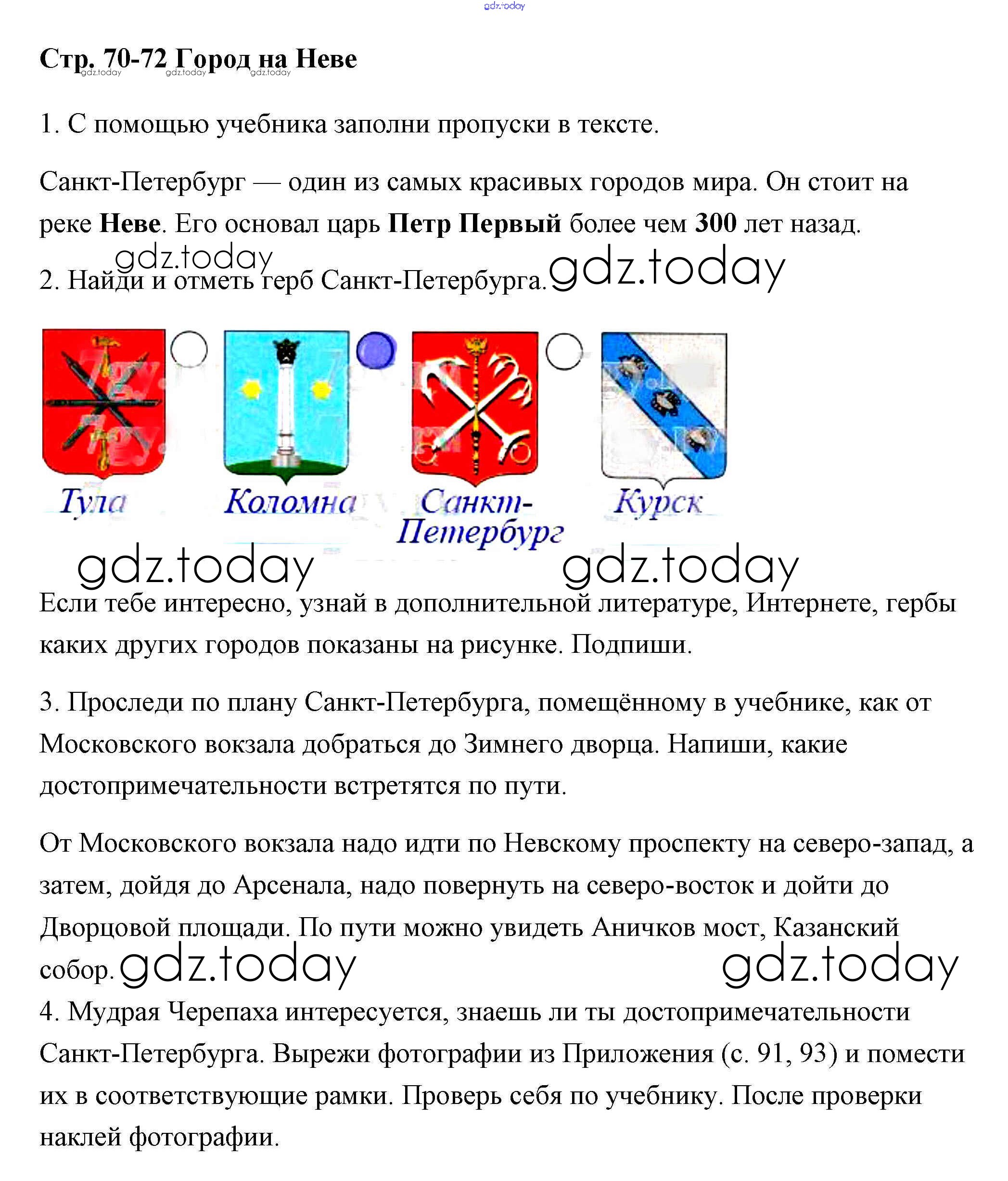 На страницах сайта gdz.today вы найдете учебный и вспомогательный материал, направленный на улучшения знаний школьной программы. ГДЗ - онлайн мир знаний Решение к части 2 (Страницы) 70-72 Рабочей тетради по Окружающему миру для 2 класса Плешаков Просвещение Школа России 2016