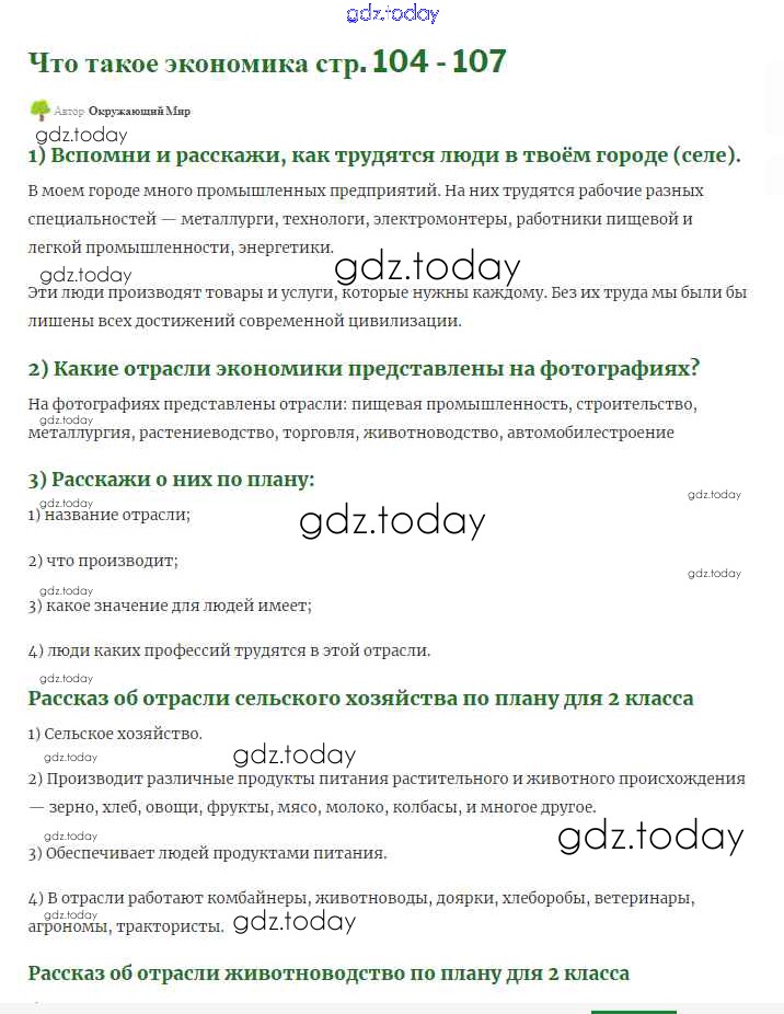 На страницах сайта gdz.today вы найдете учебный и вспомогательный материал, направленный на улучшения знаний школьной программы. ГДЗ - онлайн мир знаний Страницы Решение к части 1 104 Учебнику по Окружающему миру для 2 класса Плешаков Просвещение 2017