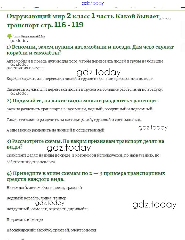 На страницах сайта gdz.today вы найдете учебный и вспомогательный материал, направленный на улучшения знаний школьной программы. ГДЗ - онлайн мир знаний Страницы Решение к части 1 116 Учебнику по Окружающему миру для 2 класса Плешаков Просвещение 2017