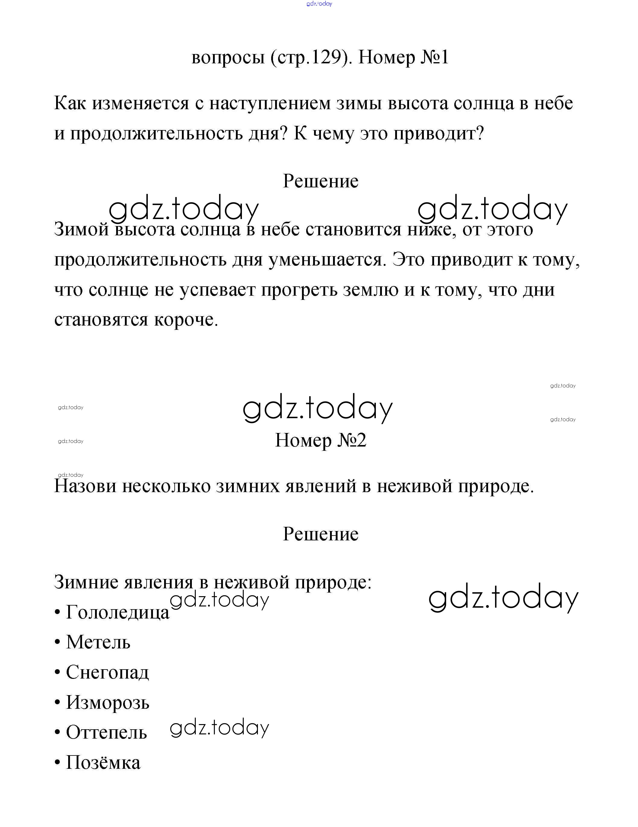 На страницах сайта gdz.today вы найдете учебный и вспомогательный материал, направленный на улучшения знаний школьной программы. ГДЗ - онлайн мир знаний Страницы Решение к части 1 129 Учебнику по Окружающему миру для 2 класса Плешаков Просвещение 2017