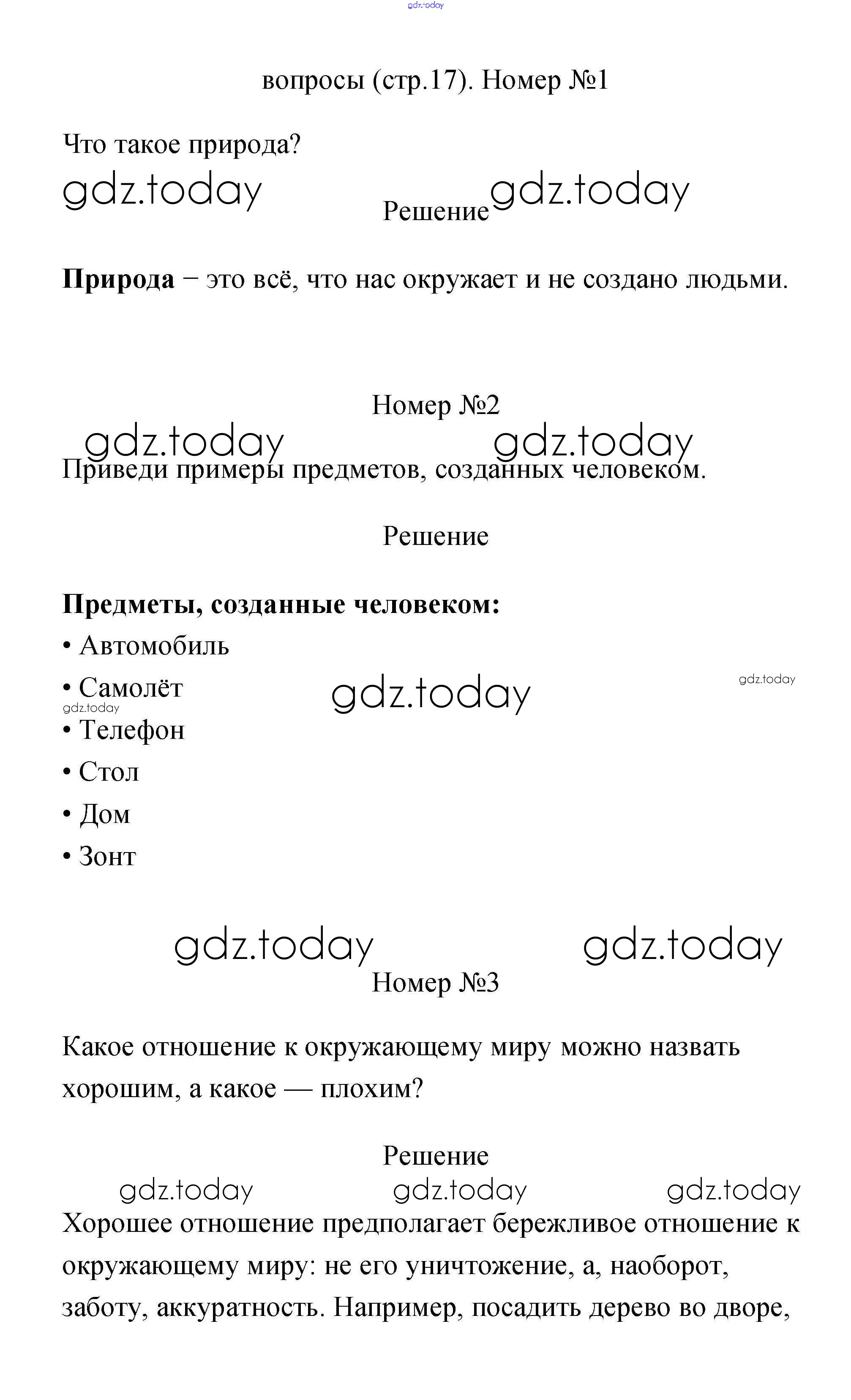 На страницах сайта gdz.today вы найдете учебный и вспомогательный материал, направленный на улучшения знаний школьной программы. ГДЗ - онлайн мир знаний Страницы Решение к части 1 17 Учебнику по Окружающему миру для 2 класса Плешаков Просвещение 2017