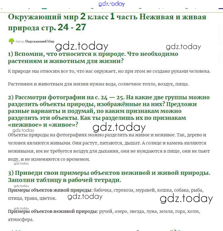На страницах сайта gdz.today вы найдете учебный и вспомогательный материал, направленный на улучшения знаний школьной программы. ГДЗ - онлайн мир знаний Страницы Решение к части 1 24 Учебнику по Окружающему миру для 2 класса Плешаков Просвещение 2017