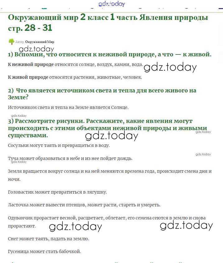 На страницах сайта gdz.today вы найдете учебный и вспомогательный материал, направленный на улучшения знаний школьной программы. ГДЗ - онлайн мир знаний Страницы Решение к части 1 28 Учебнику по Окружающему миру для 2 класса Плешаков Просвещение 2017