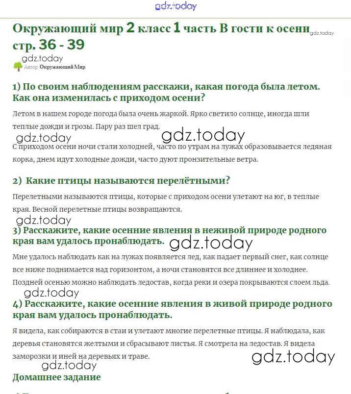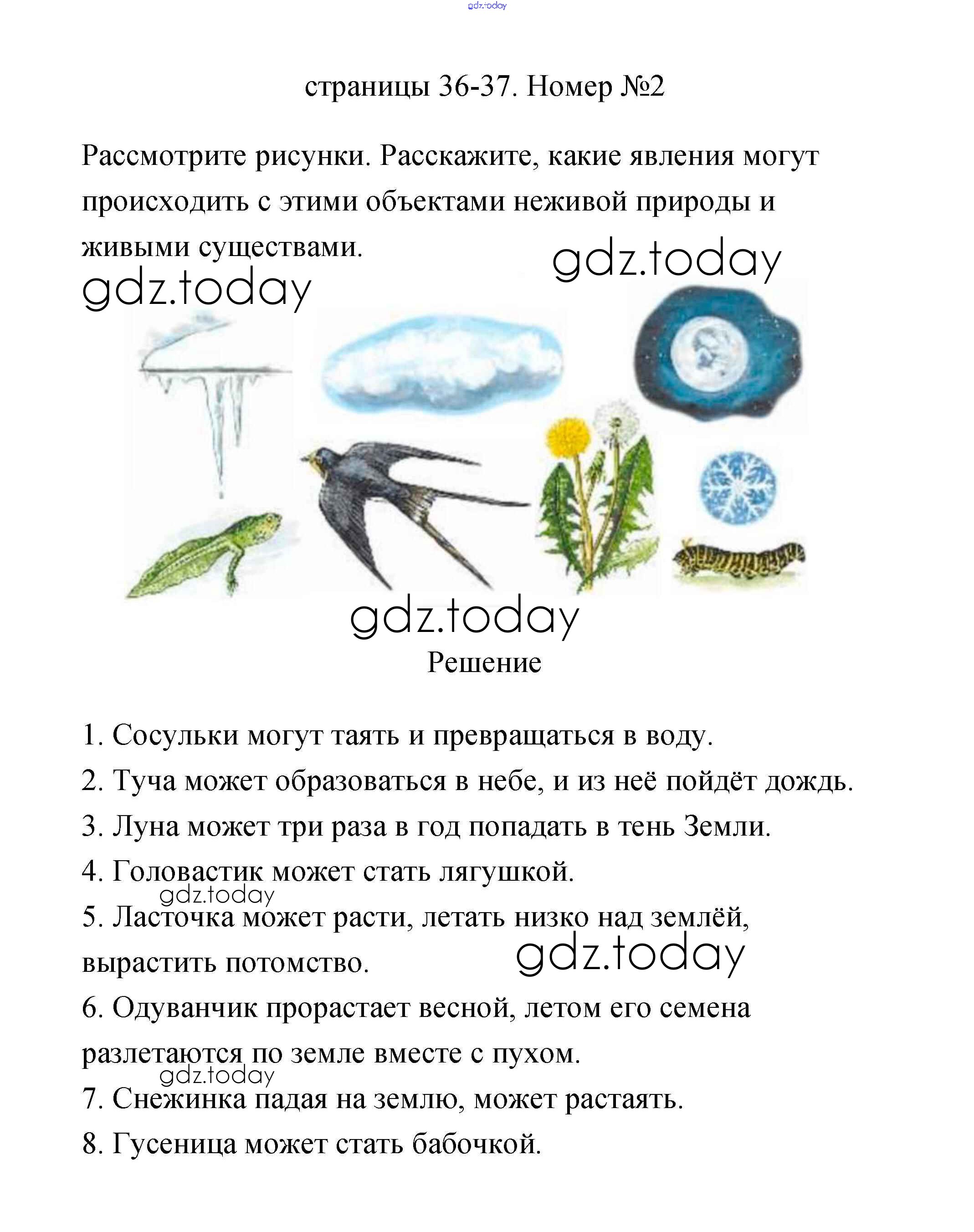 На страницах сайта gdz.today вы найдете учебный и вспомогательный материал, направленный на улучшения знаний школьной программы. ГДЗ - онлайн мир знаний Страницы Решение к части 1 36 Учебнику по Окружающему миру для 2 класса Плешаков Просвещение 2017