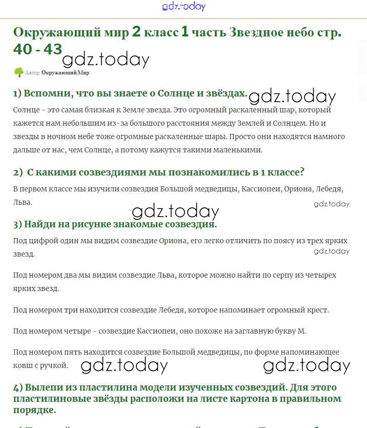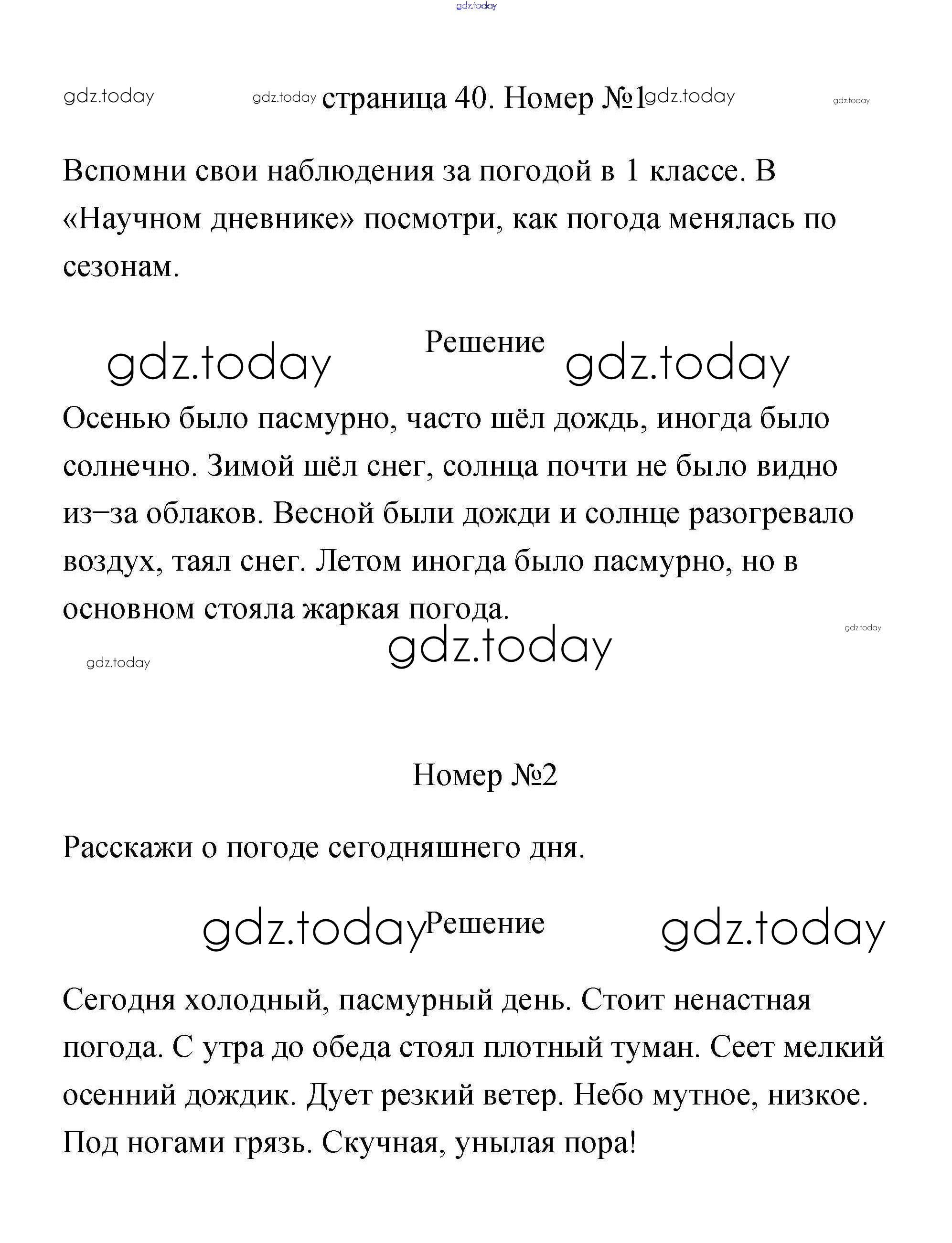 На страницах сайта gdz.today вы найдете учебный и вспомогательный материал, направленный на улучшения знаний школьной программы. ГДЗ - онлайн мир знаний Страницы Решение к части 1 40 Учебнику по Окружающему миру для 2 класса Плешаков Просвещение 2017