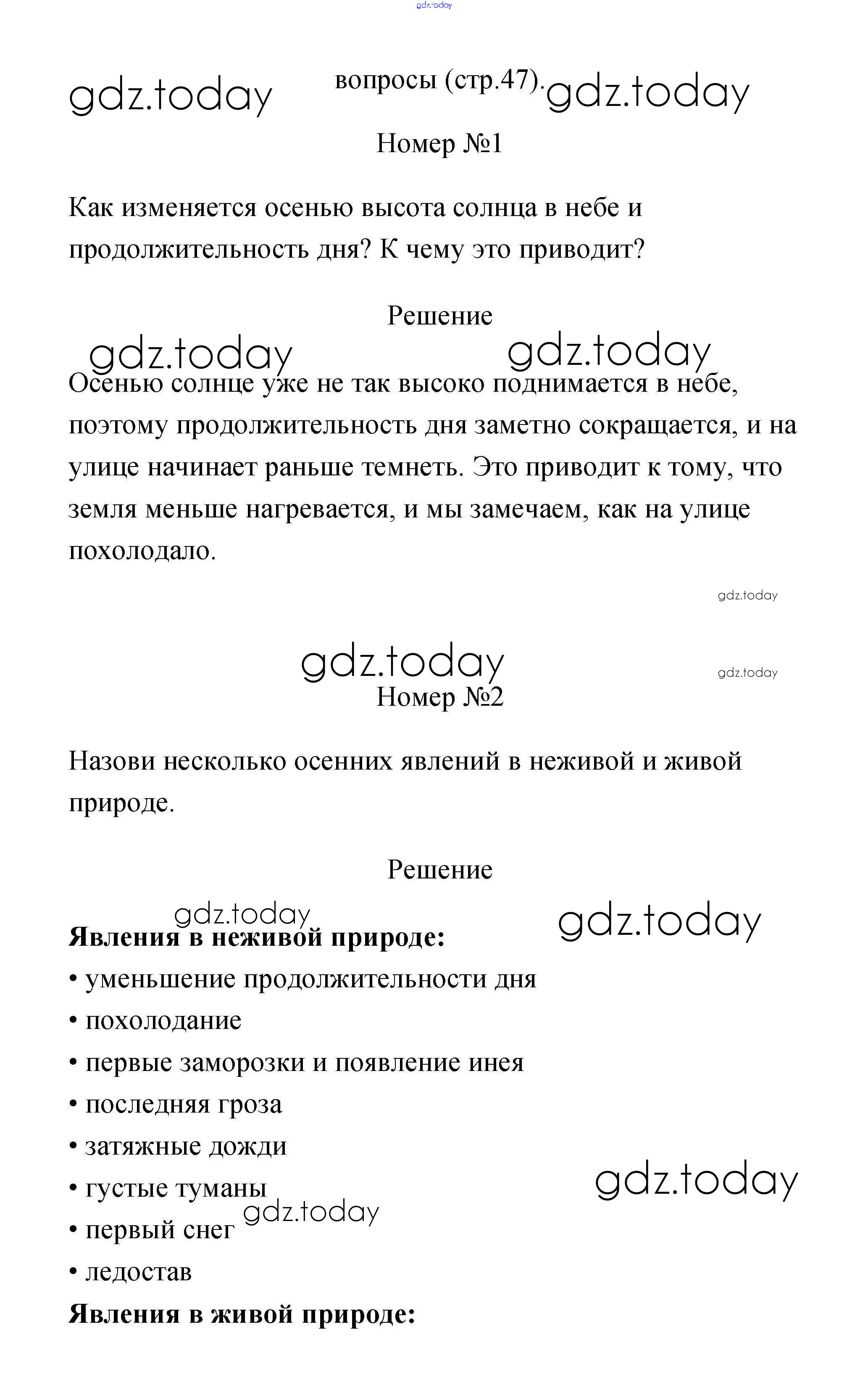 На страницах сайта gdz.today вы найдете учебный и вспомогательный материал, направленный на улучшения знаний школьной программы. ГДЗ - онлайн мир знаний Страницы Решение к части 1 47 Учебнику по Окружающему миру для 2 класса Плешаков Просвещение 2017