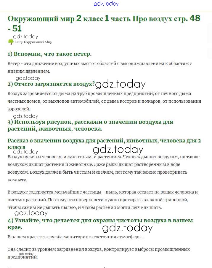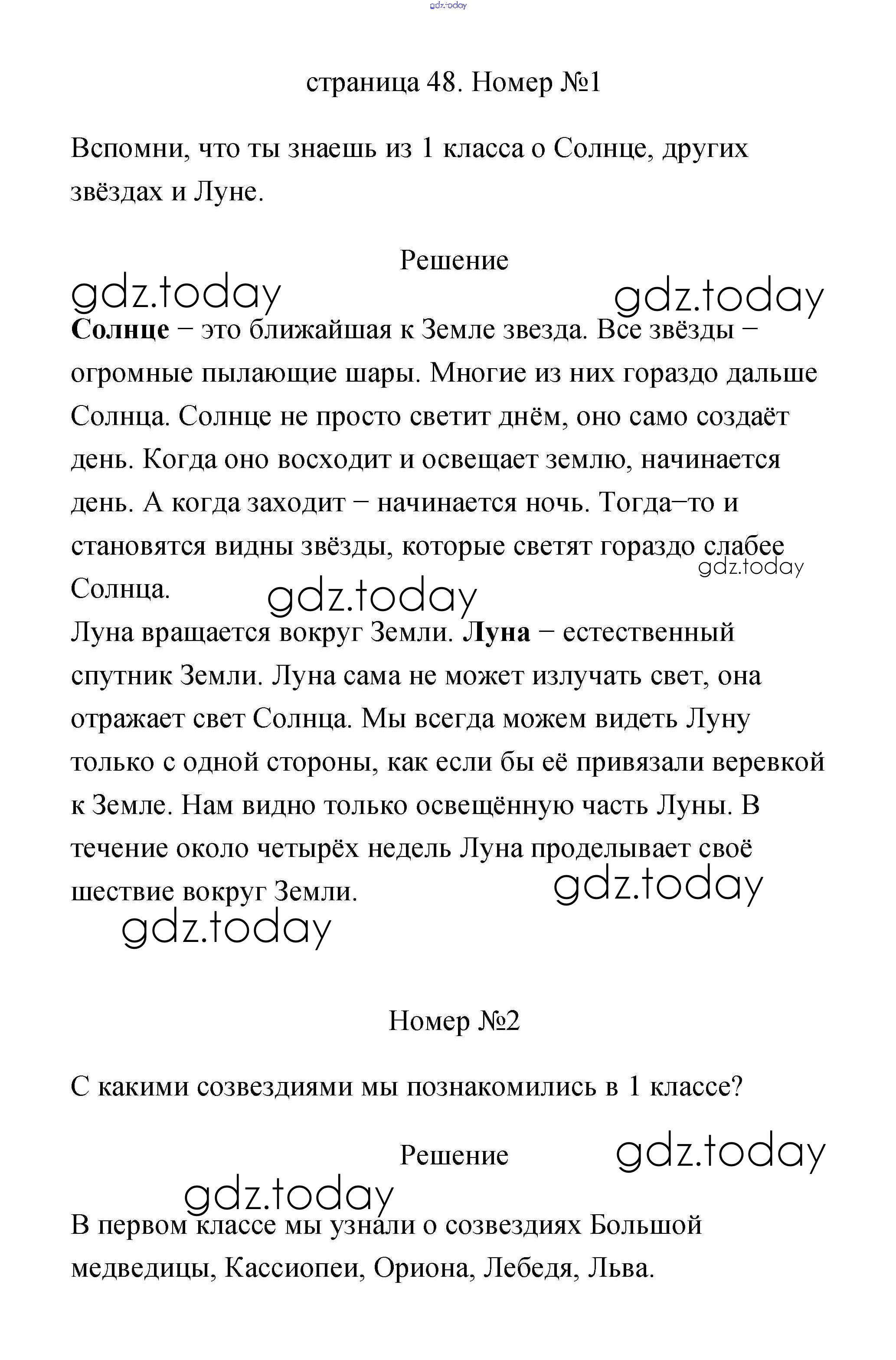 На страницах сайта gdz.today вы найдете учебный и вспомогательный материал, направленный на улучшения знаний школьной программы. ГДЗ - онлайн мир знаний Страницы Решение к части 1 48 Учебнику по Окружающему миру для 2 класса Плешаков Просвещение 2017