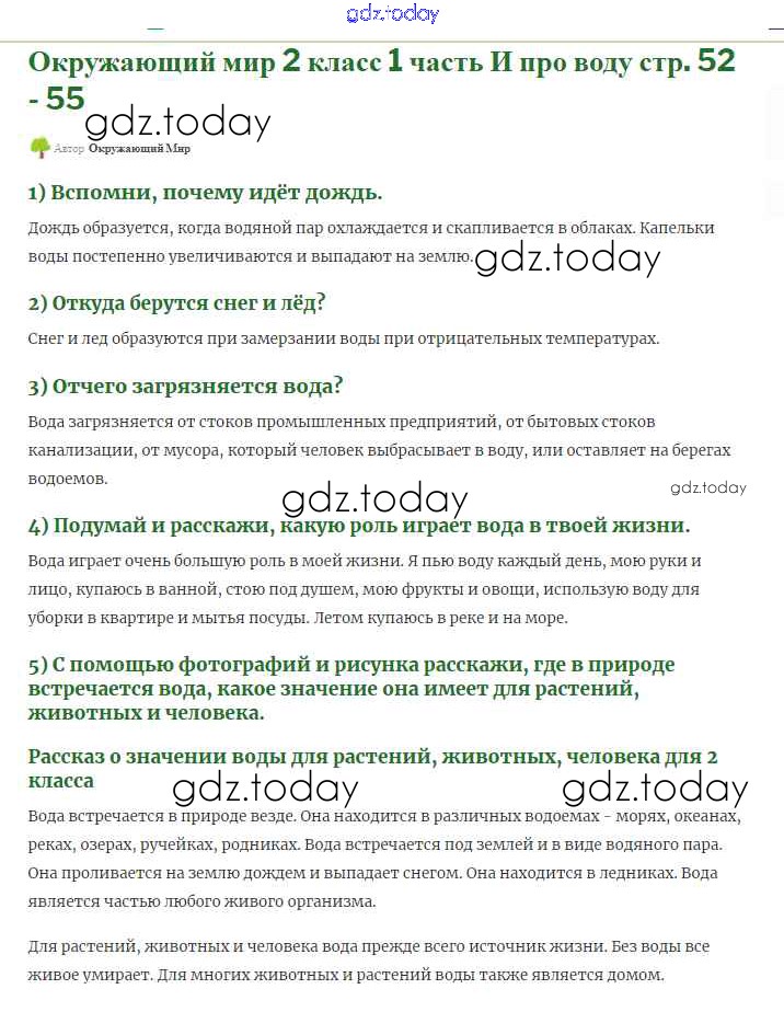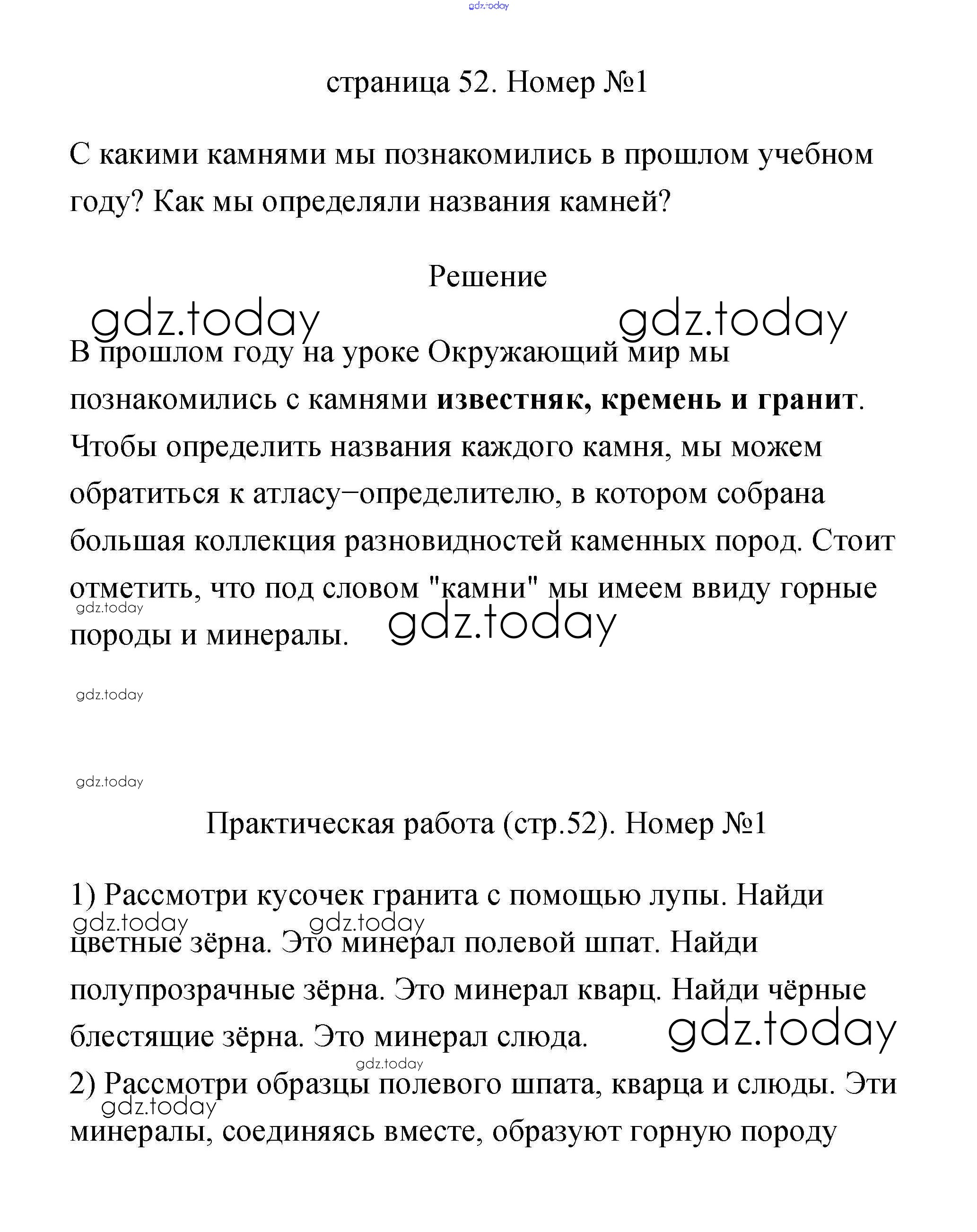 На страницах сайта gdz.today вы найдете учебный и вспомогательный материал, направленный на улучшения знаний школьной программы. ГДЗ - онлайн мир знаний Страницы Решение к части 1 52 Учебнику по Окружающему миру для 2 класса Плешаков Просвещение 2017