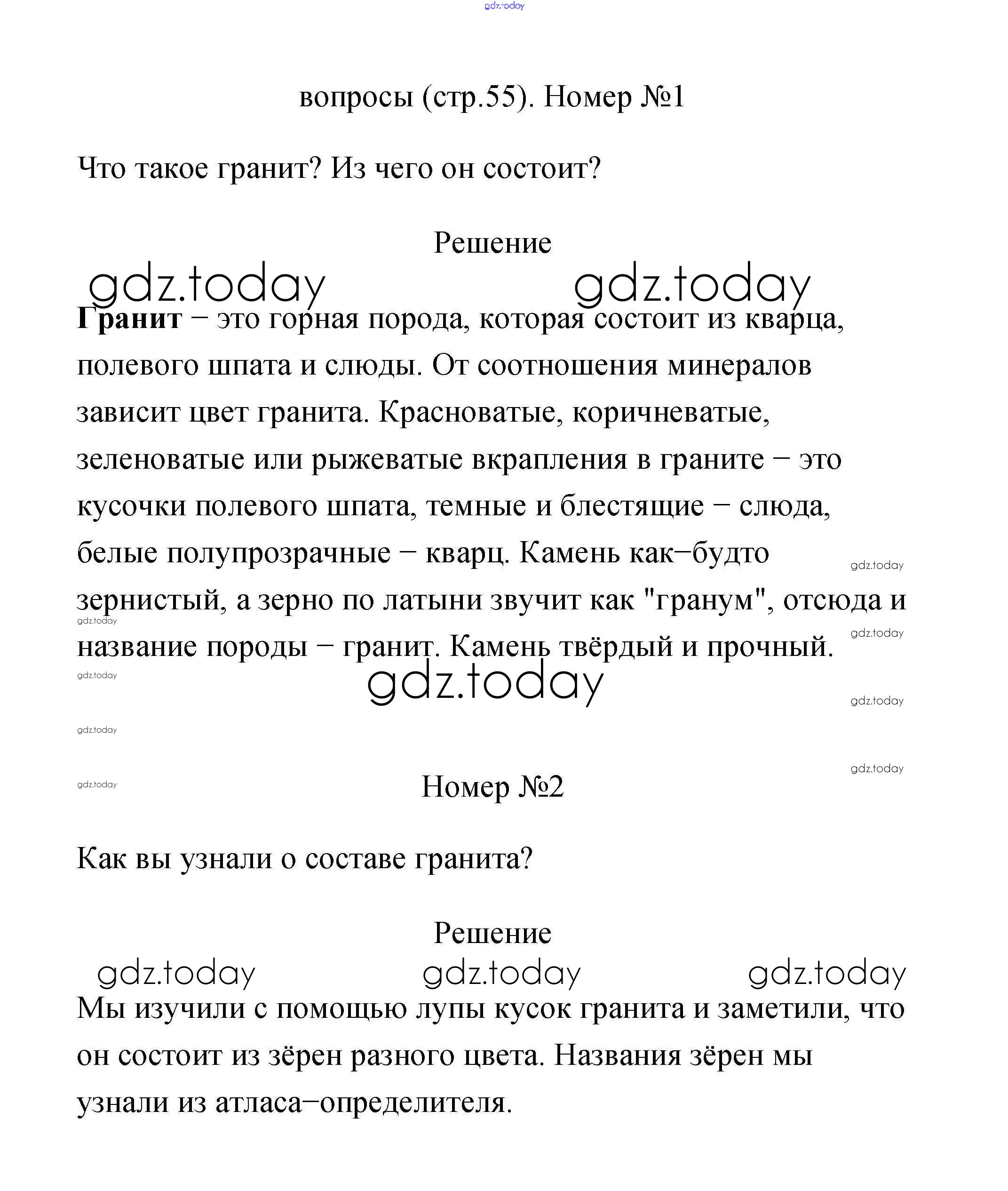 На страницах сайта gdz.today вы найдете учебный и вспомогательный материал, направленный на улучшения знаний школьной программы. ГДЗ - онлайн мир знаний Страницы Решение к части 1 55 Учебнику по Окружающему миру для 2 класса Плешаков Просвещение 2017
