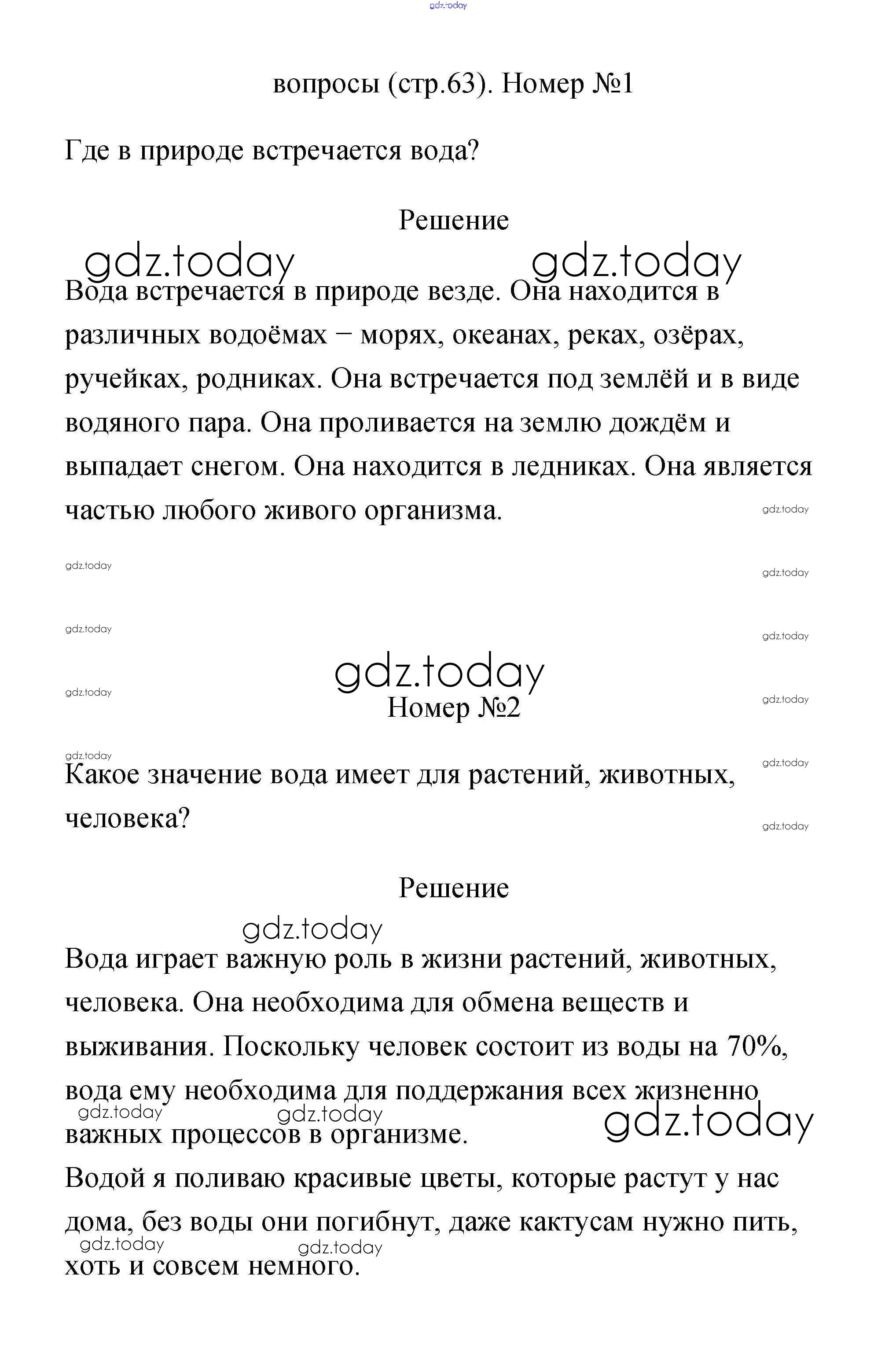 На страницах сайта gdz.today вы найдете учебный и вспомогательный материал, направленный на улучшения знаний школьной программы. ГДЗ - онлайн мир знаний Страницы Решение к части 1 63 Учебнику по Окружающему миру для 2 класса Плешаков Просвещение 2017