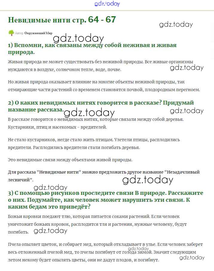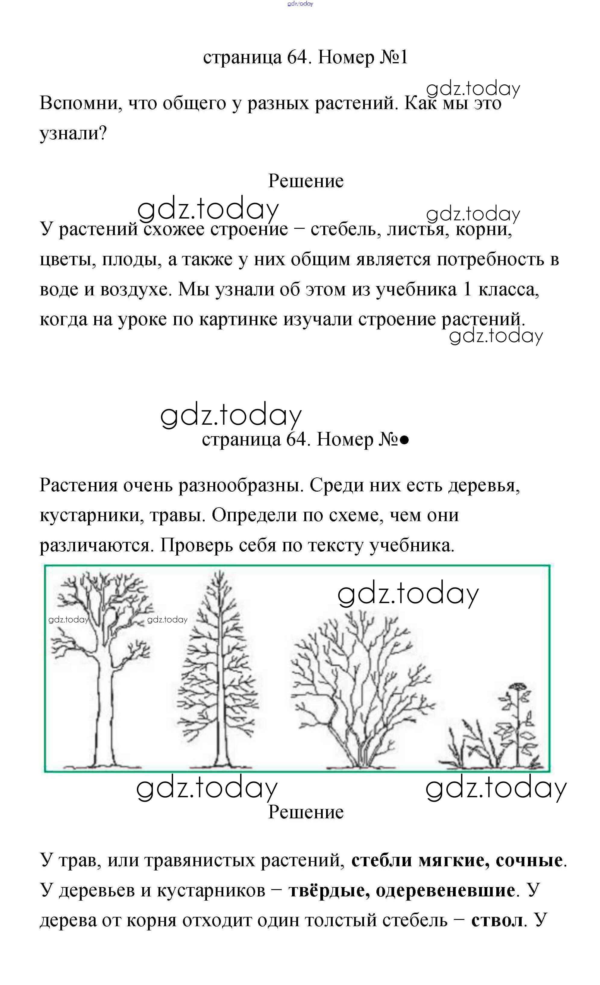 На страницах сайта gdz.today вы найдете учебный и вспомогательный материал, направленный на улучшения знаний школьной программы. ГДЗ - онлайн мир знаний Страницы Решение к части 1 64 Учебнику по Окружающему миру для 2 класса Плешаков Просвещение 2017