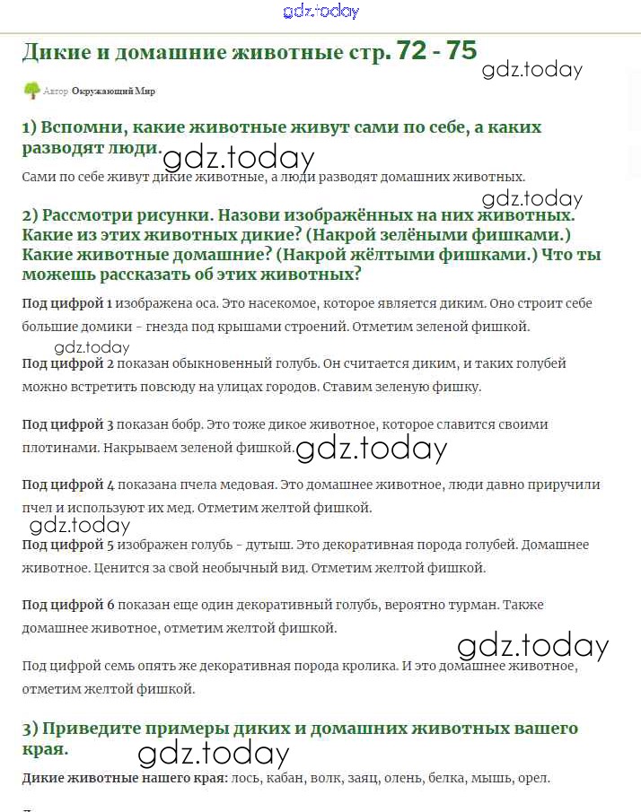 На страницах сайта gdz.today вы найдете учебный и вспомогательный материал, направленный на улучшения знаний школьной программы. ГДЗ - онлайн мир знаний Страницы Решение к части 1 72 Учебнику по Окружающему миру для 2 класса Плешаков Просвещение 2017