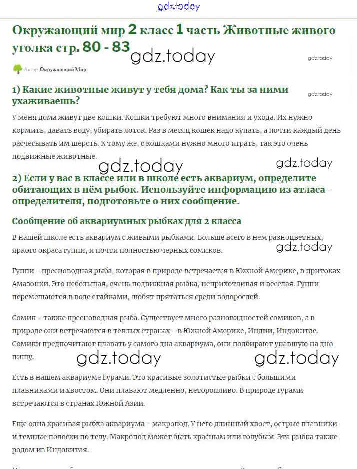 На страницах сайта gdz.today вы найдете учебный и вспомогательный материал, направленный на улучшения знаний школьной программы. ГДЗ - онлайн мир знаний Страницы Решение к части 1 80 Учебнику по Окружающему миру для 2 класса Плешаков Просвещение 2017
