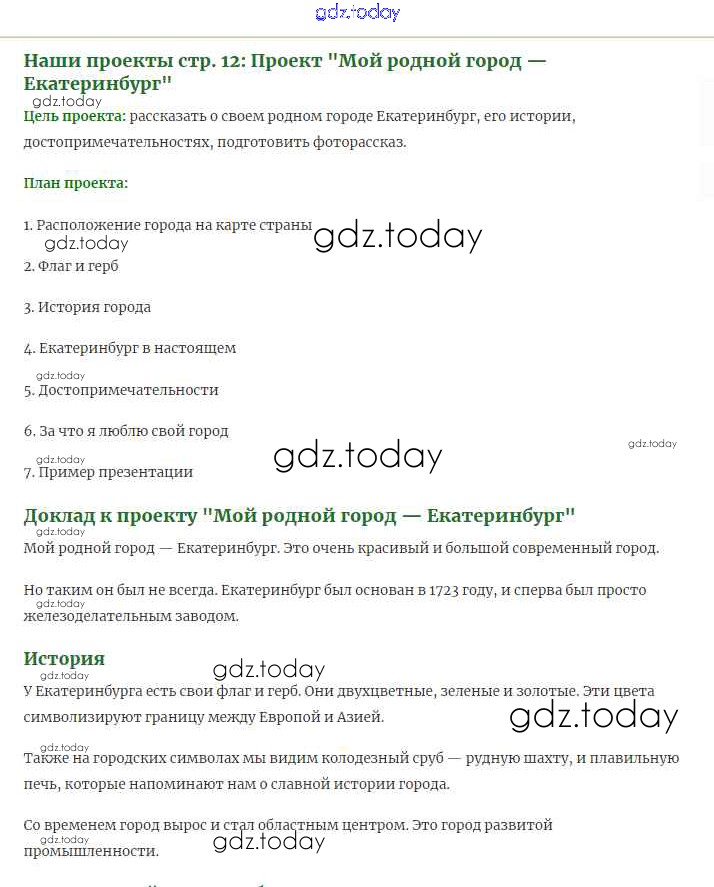 На страницах сайта gdz.today вы найдете учебный и вспомогательный материал, направленный на улучшения знаний школьной программы. ГДЗ - онлайн мир знаний Мой родной город и село (страница 12) Решение к части 1 6 Учебнику по Окружающему миру для 2 класса Плешаков Просвещение 2017