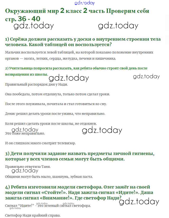 На страницах сайта gdz.today вы найдете учебный и вспомогательный материал, направленный на улучшения знаний школьной программы. ГДЗ - онлайн мир знаний Страницы Решение к части 2 36 Учебнику по Окружающему миру для 2 класса Плешаков Просвещение 2017