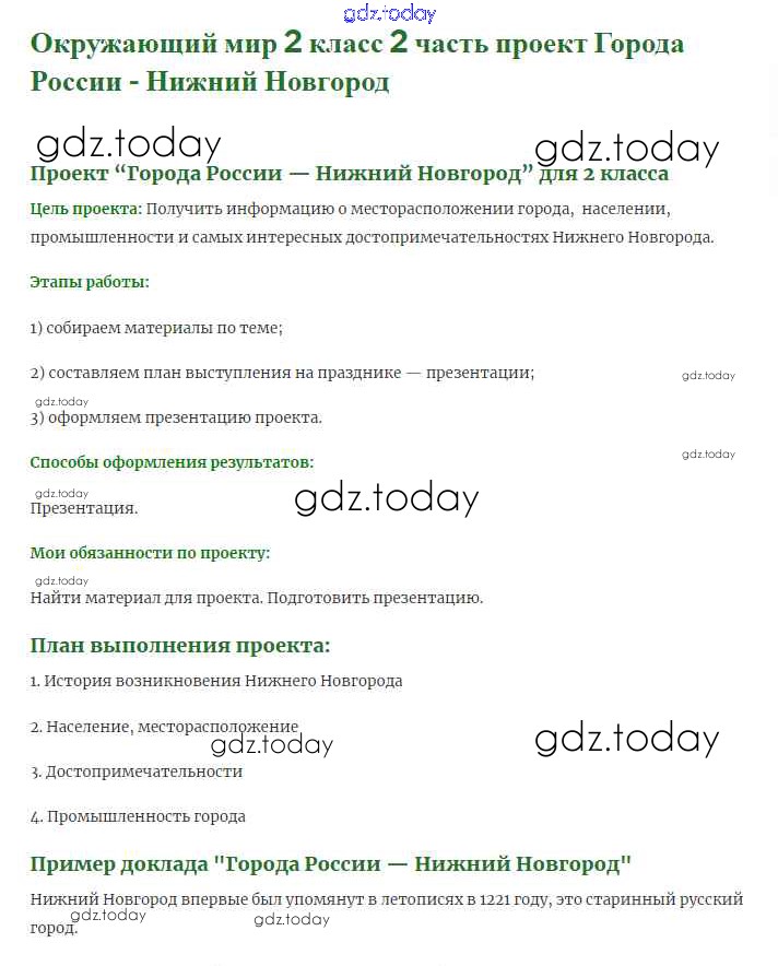 На страницах сайта gdz.today вы найдете учебный и вспомогательный материал, направленный на улучшения знаний школьной программы. ГДЗ - онлайн мир знаний Города России (страница 96) Решение к части 2 10 Учебнику по Окружающему миру для 2 класса Плешаков Просвещение 2017