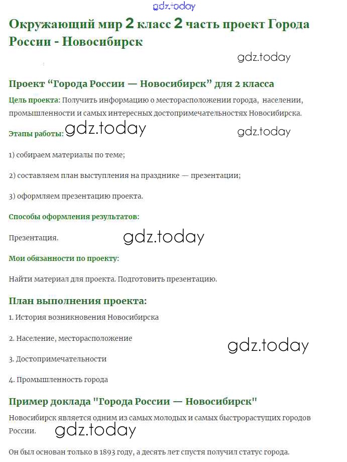 На страницах сайта gdz.today вы найдете учебный и вспомогательный материал, направленный на улучшения знаний школьной программы. ГДЗ - онлайн мир знаний Города России (страница 96) Решение к части 2 11 Учебнику по Окружающему миру для 2 класса Плешаков Просвещение 2017