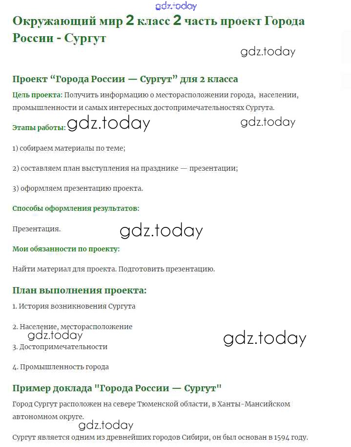 На страницах сайта gdz.today вы найдете учебный и вспомогательный материал, направленный на улучшения знаний школьной программы. ГДЗ - онлайн мир знаний Города России (страница 96) Решение к части 2 5 Учебнику по Окружающему миру для 2 класса Плешаков Просвещение 2017