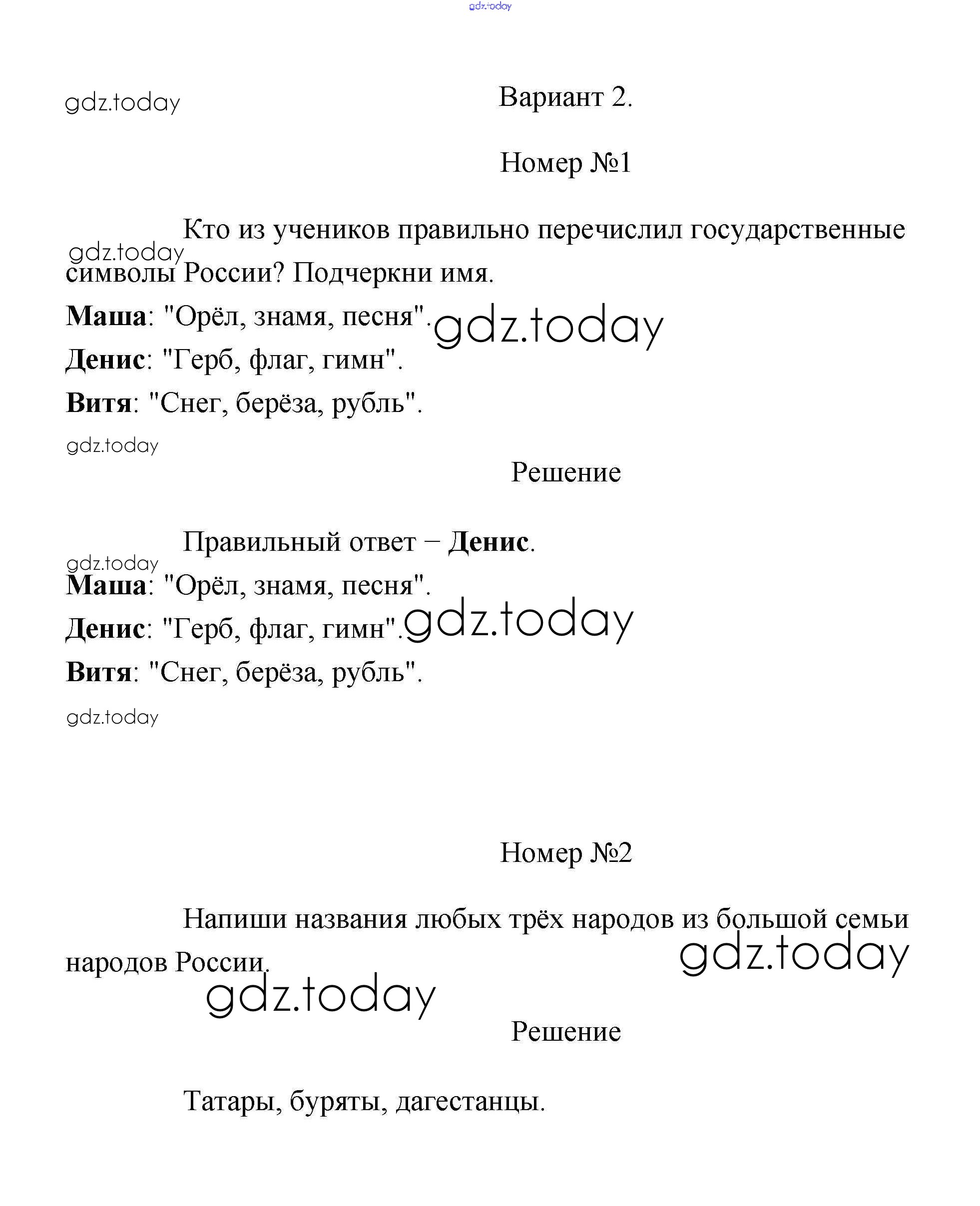На страницах сайта gdz.today вы найдете учебный и вспомогательный материал, направленный на улучшения знаний школьной программы. ГДЗ - онлайн мир знаний Решение к проверочной работе №2 (Варианты) 2 Проверочным работам по Окружающему миру для 2 класса Плешаков Просвещение Школа России 2018