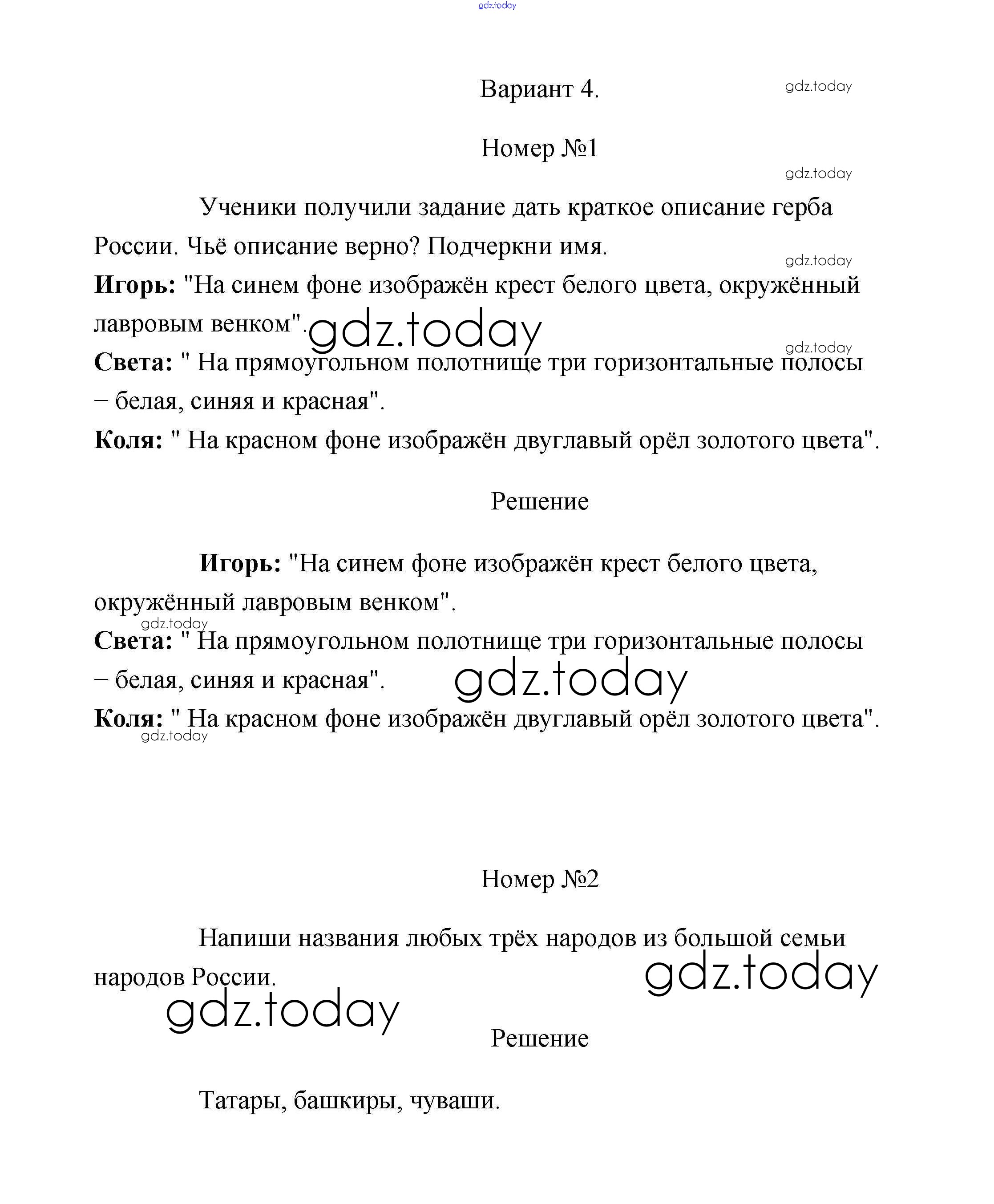 На страницах сайта gdz.today вы найдете учебный и вспомогательный материал, направленный на улучшения знаний школьной программы. ГДЗ - онлайн мир знаний Решение к проверочной работе №2 (Варианты) 4 Проверочным работам по Окружающему миру для 2 класса Плешаков Просвещение Школа России 2018