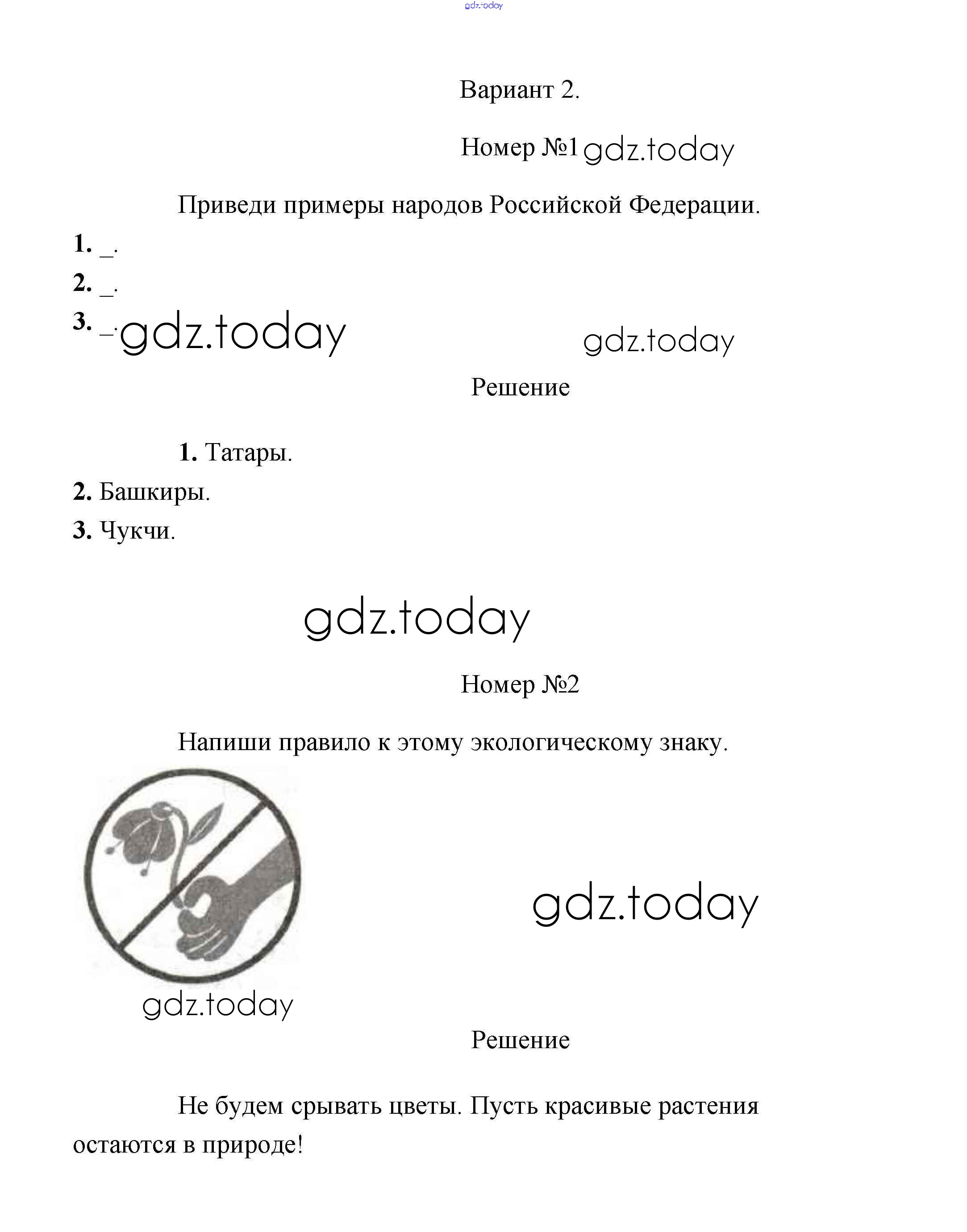 На страницах сайта gdz.today вы найдете учебный и вспомогательный материал, направленный на улучшения знаний школьной программы. ГДЗ - онлайн мир знаний Решение к проверочной работе №8 (Варианты) 2 Проверочным работам по Окружающему миру для 2 класса Плешаков Просвещение Школа России 2018