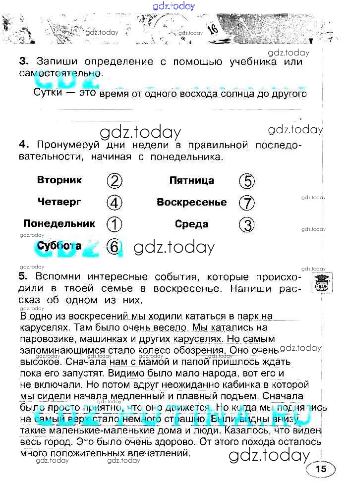 На страницах сайта gdz.today вы найдете учебный и вспомогательный материал, направленный на улучшения знаний школьной программы. ГДЗ - онлайн мир знаний Решение к части 1 (Страницы) 15 Рабочей тетради по Окружающему миру для 2 класса Плешаков, Новицкая Просвещение Перспектива 2017