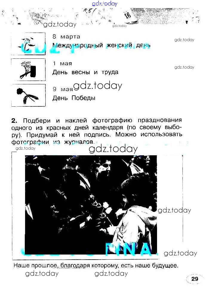 На страницах сайта gdz.today вы найдете учебный и вспомогательный материал, направленный на улучшения знаний школьной программы. ГДЗ - онлайн мир знаний Решение к части 1 (Страницы) 29 Рабочей тетради по Окружающему миру для 2 класса Плешаков, Новицкая Просвещение Перспектива 2017