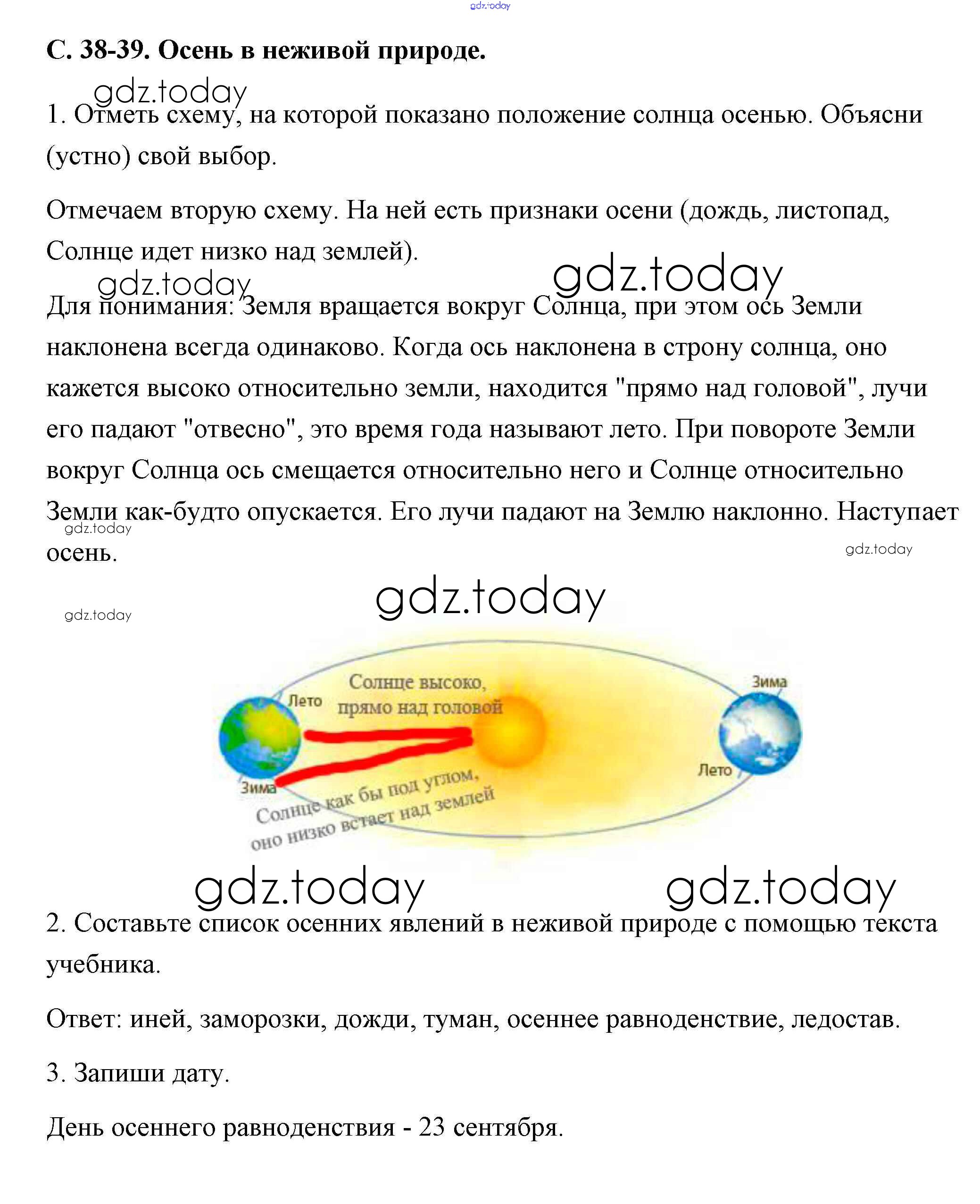 На страницах сайта gdz.today вы найдете учебный и вспомогательный материал, направленный на улучшения знаний школьной программы. ГДЗ - онлайн мир знаний Решение к части 1 (Страницы) 38-39 Рабочей тетради по Окружающему миру для 2 класса Плешаков, Новицкая Просвещение Перспектива 2017