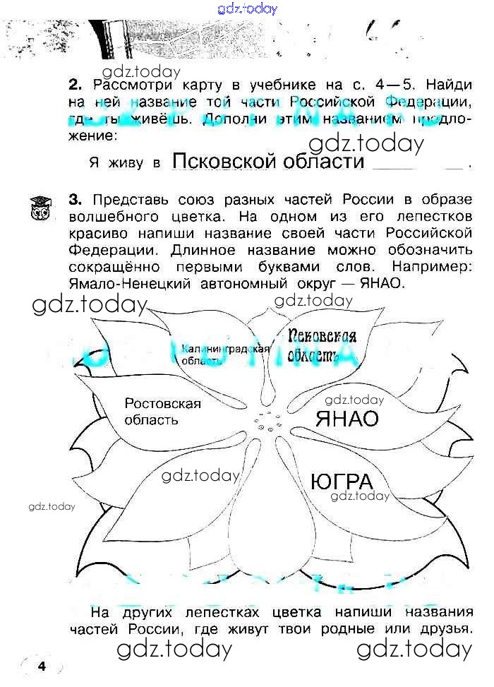 На страницах сайта gdz.today вы найдете учебный и вспомогательный материал, направленный на улучшения знаний школьной программы. ГДЗ - онлайн мир знаний Решение к части 1 (Страницы) 4 Рабочей тетради по Окружающему миру для 2 класса Плешаков, Новицкая Просвещение Перспектива 2017