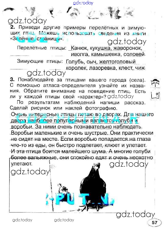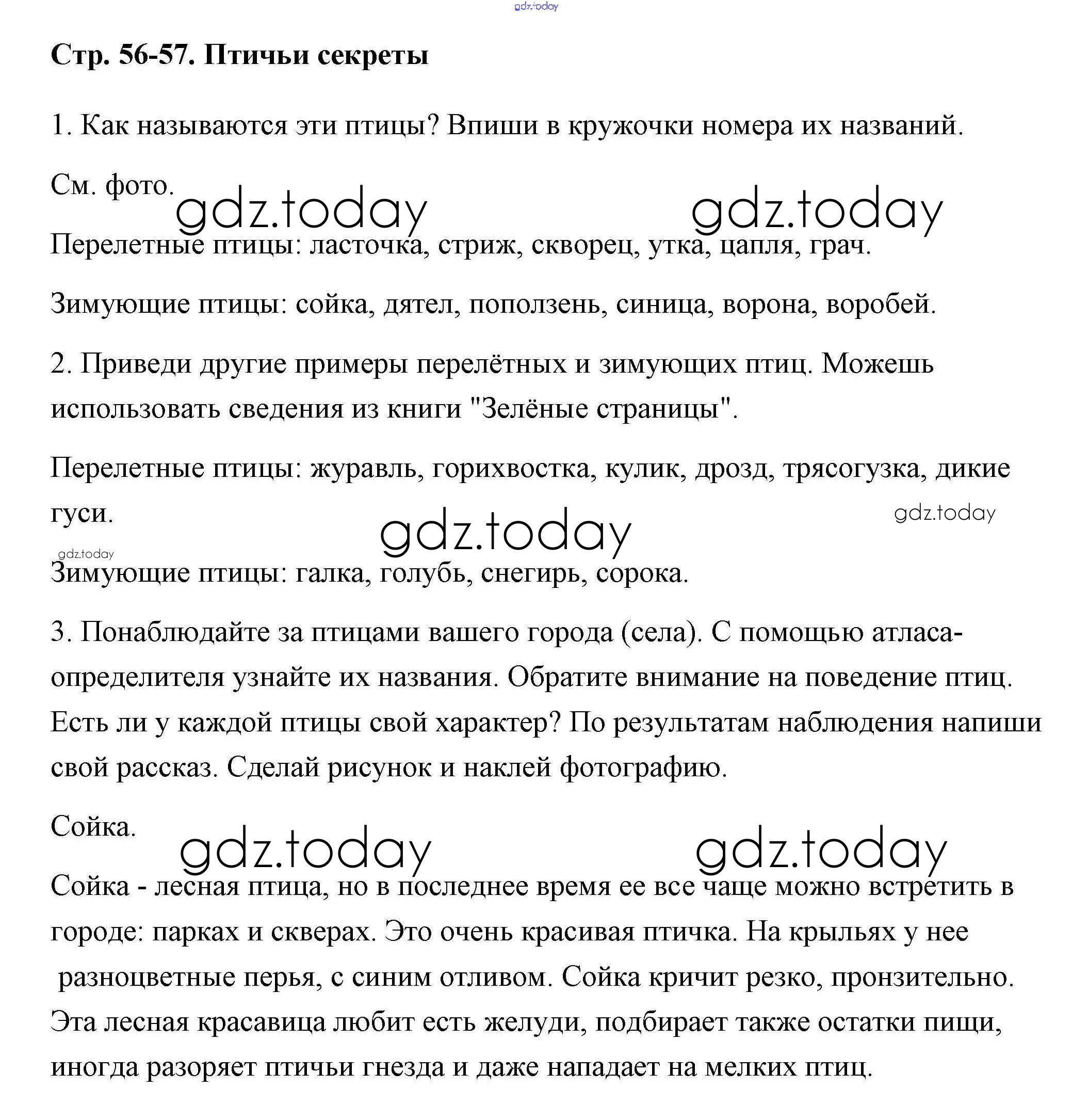 На страницах сайта gdz.today вы найдете учебный и вспомогательный материал, направленный на улучшения знаний школьной программы. ГДЗ - онлайн мир знаний Решение к части 1 (Страницы) 56-57 Рабочей тетради по Окружающему миру для 2 класса Плешаков, Новицкая Просвещение Перспектива 2017